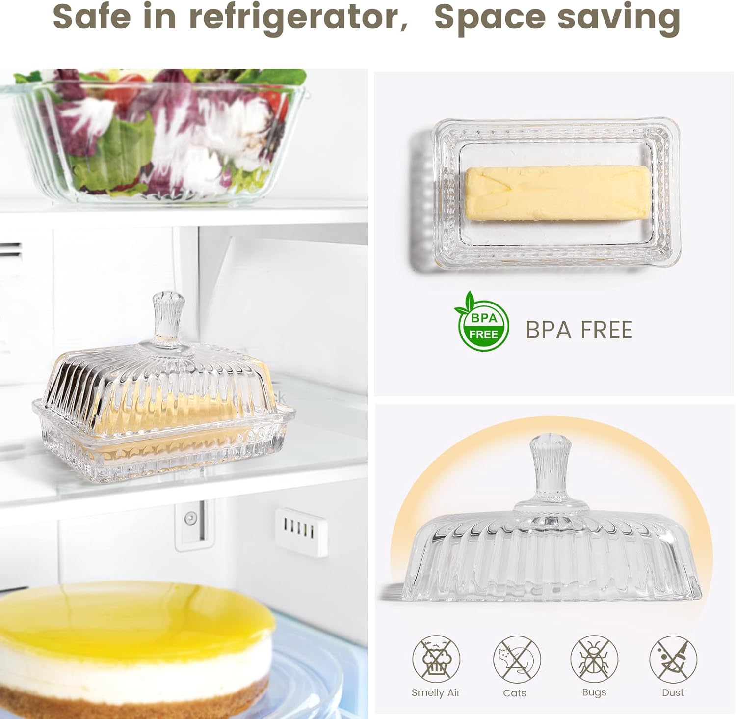 - 【Observable Glass Butter Cover】: The transparent and visual butter lid allows you to clearly observe the usage and storage of butter. The bottom and lid of the butter dish can be perfectly closed, effectively preventing air infiltration and better storing your butter or other food.