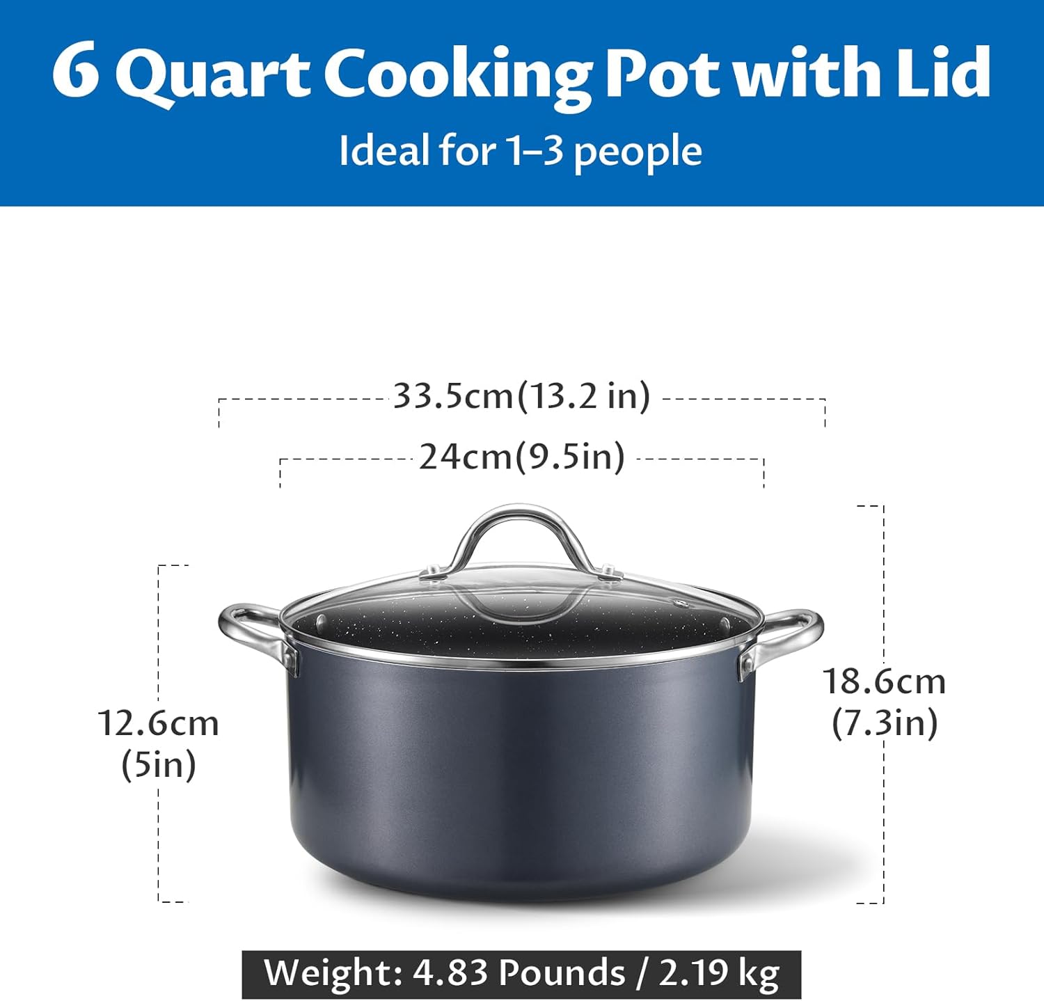 - 6 Quart Pot with Lid: Perfect for everyday cooking, this versatile cooking pot handles soups, stews, and pasta with ease—ideal for couples and small families