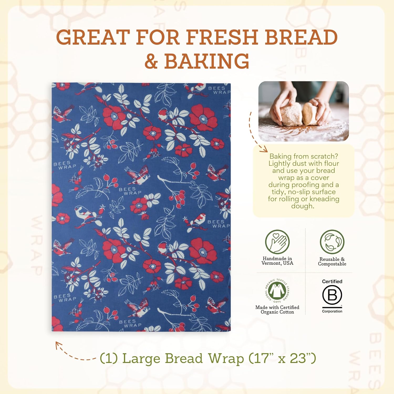 Bee's Wrap Beeswax Wraps for Food - Botanical Bread Wrap - Made in USA Reusable Bread Storage Bags - Organic & Eco-Friendly Alternative to Aluminum Foil, Sourdough Bags & Plastic Wrap