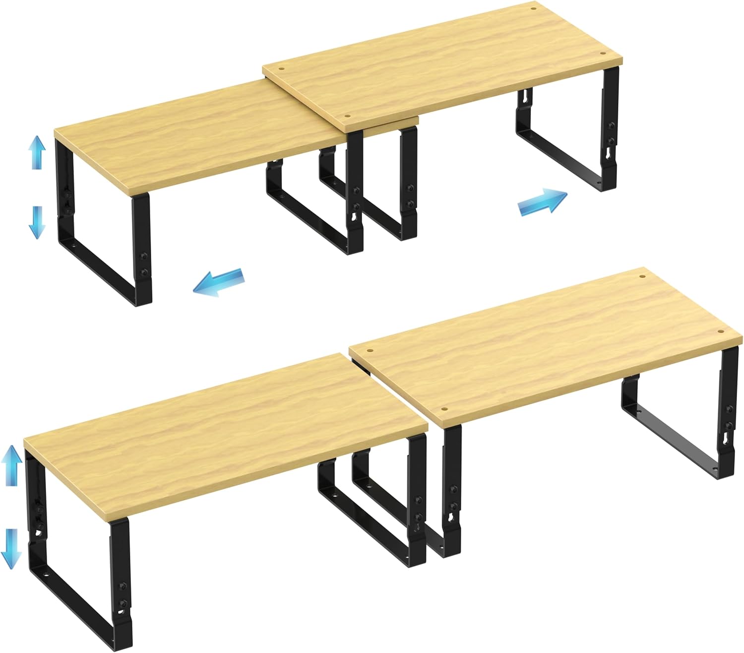 Expandable Kitchen Cabinet Organizer Shelves – Stackable Adjustable Metal and Wood Storage Racks for Countertop, Pantry, Garage Set of 2 Spice Rack – Easy Assembly, Space-Saving(2 Packs/Large/Black)