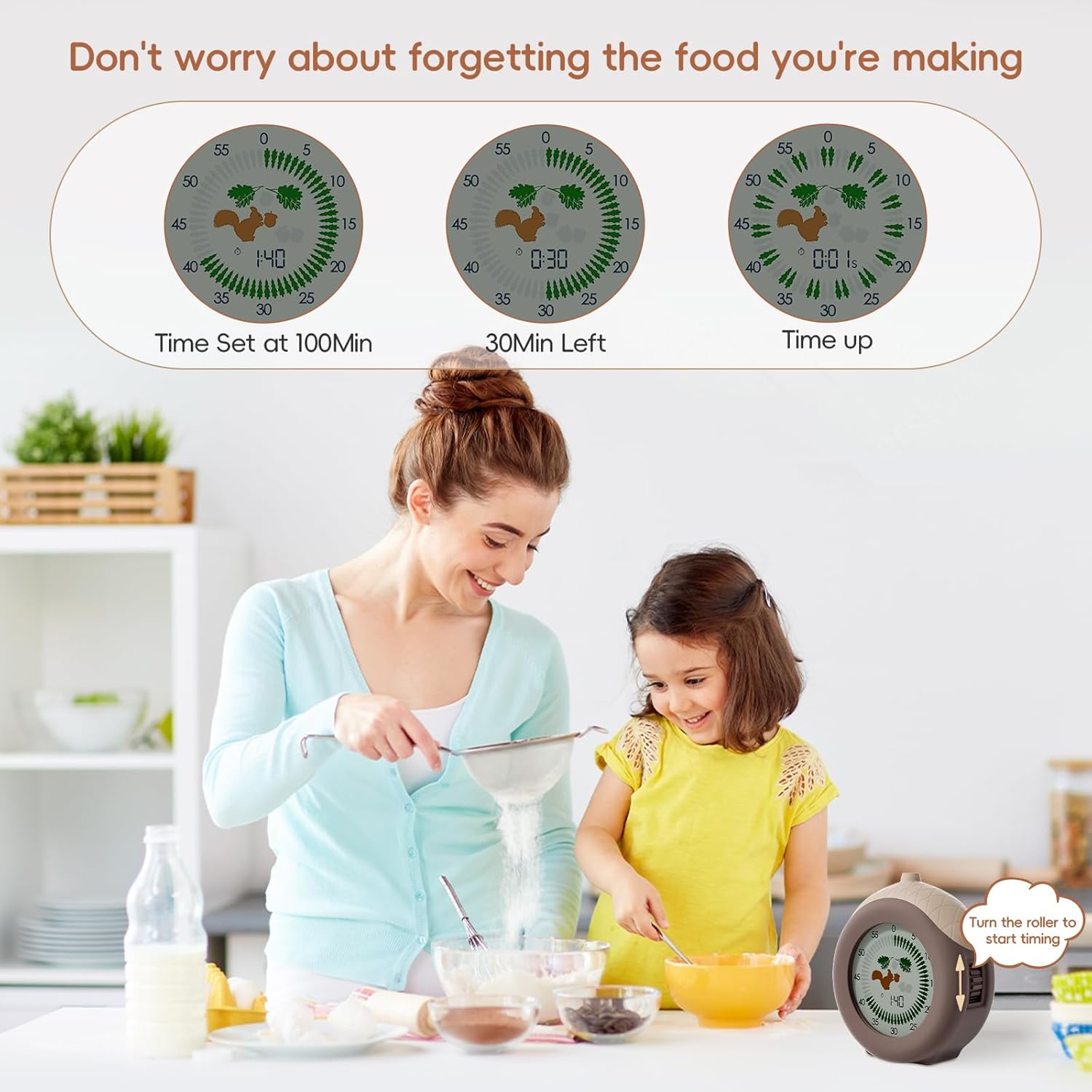 Digital Visual Timer for Kids with Protective Case, Hazelnut Theme 299 Minute Cute Squirrel Timer for Classroom Office Kitchen, Time Management Tools for ADHD Children