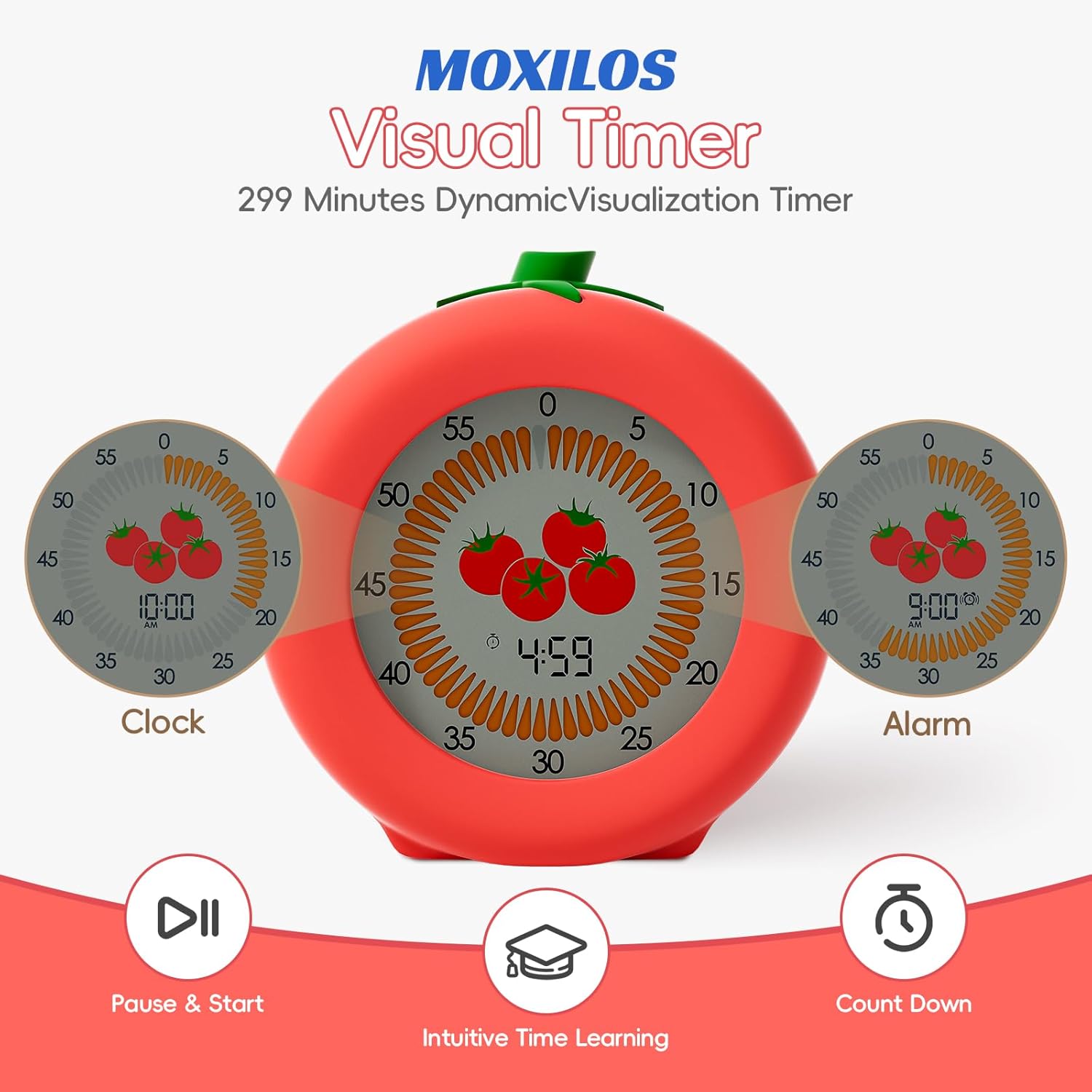Digital Visual Timer for Kids with Protective Case, Tomato Theme 299 Minute Pomodoro Timer for Classroom Office Kitchen, Time Management Tools for ADHD Children