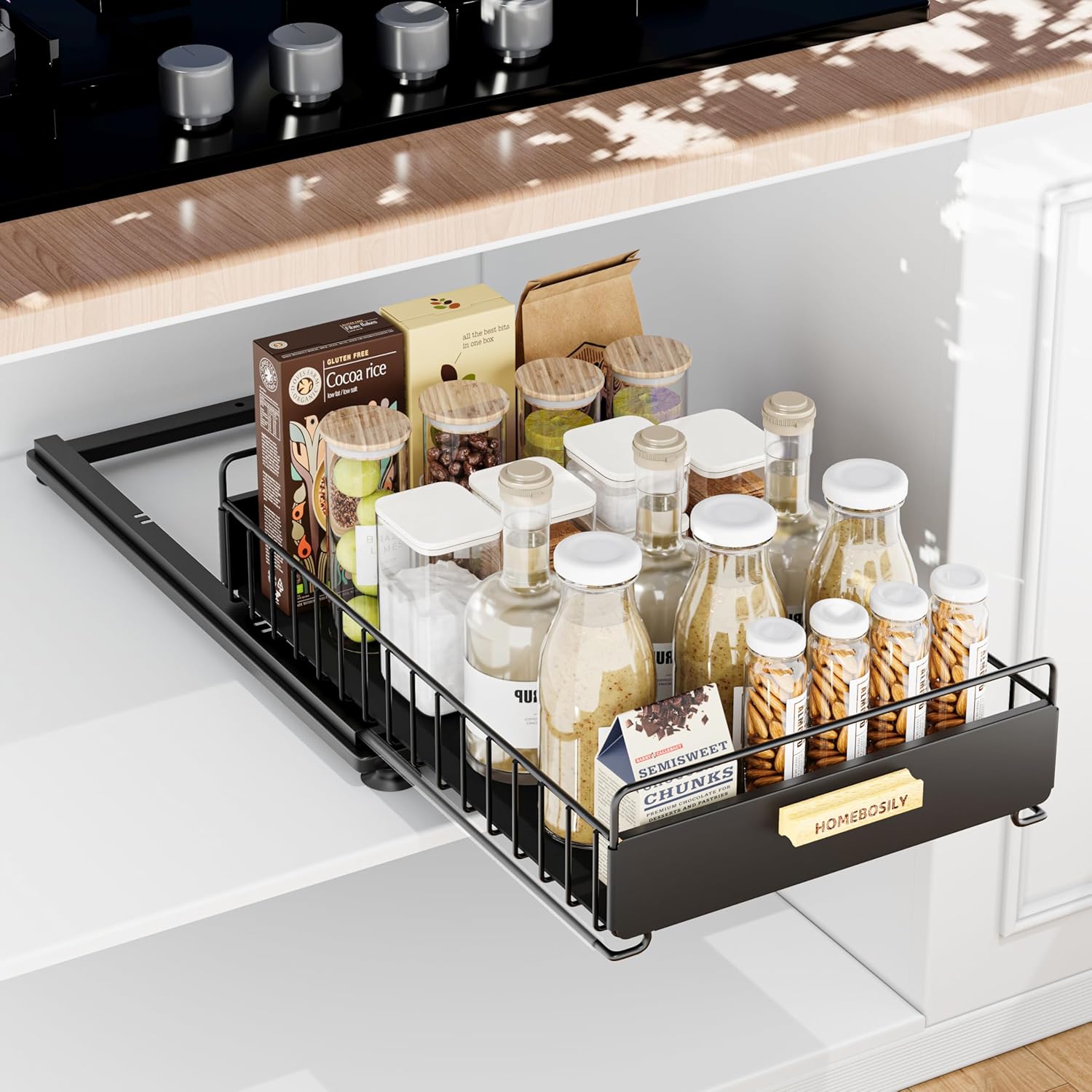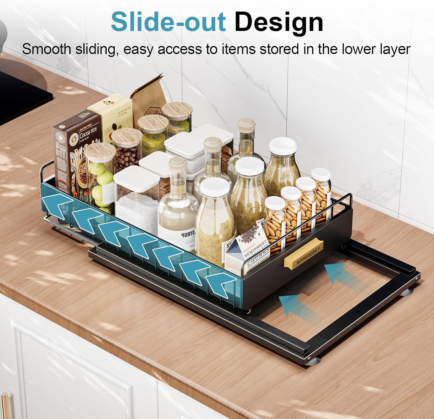 Under Sink Organizer, Kitchen Under Sink Organizers and Storage, Mute Pull Out Cabinet Organizer Shelf, Metal Sliding Drawer for Kitchen Bathroom Pantry Cabinet Closet Organization Rack, Black