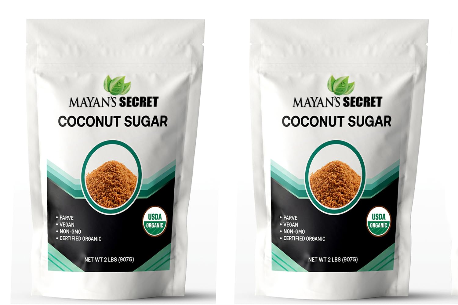Mayan's Secret 2 lbs USDA Certified Brown Coconut Sugar Organic for Baking - Low Glycemic | Unrefined | Trace Minerals (1 Pound (Pack of 2))