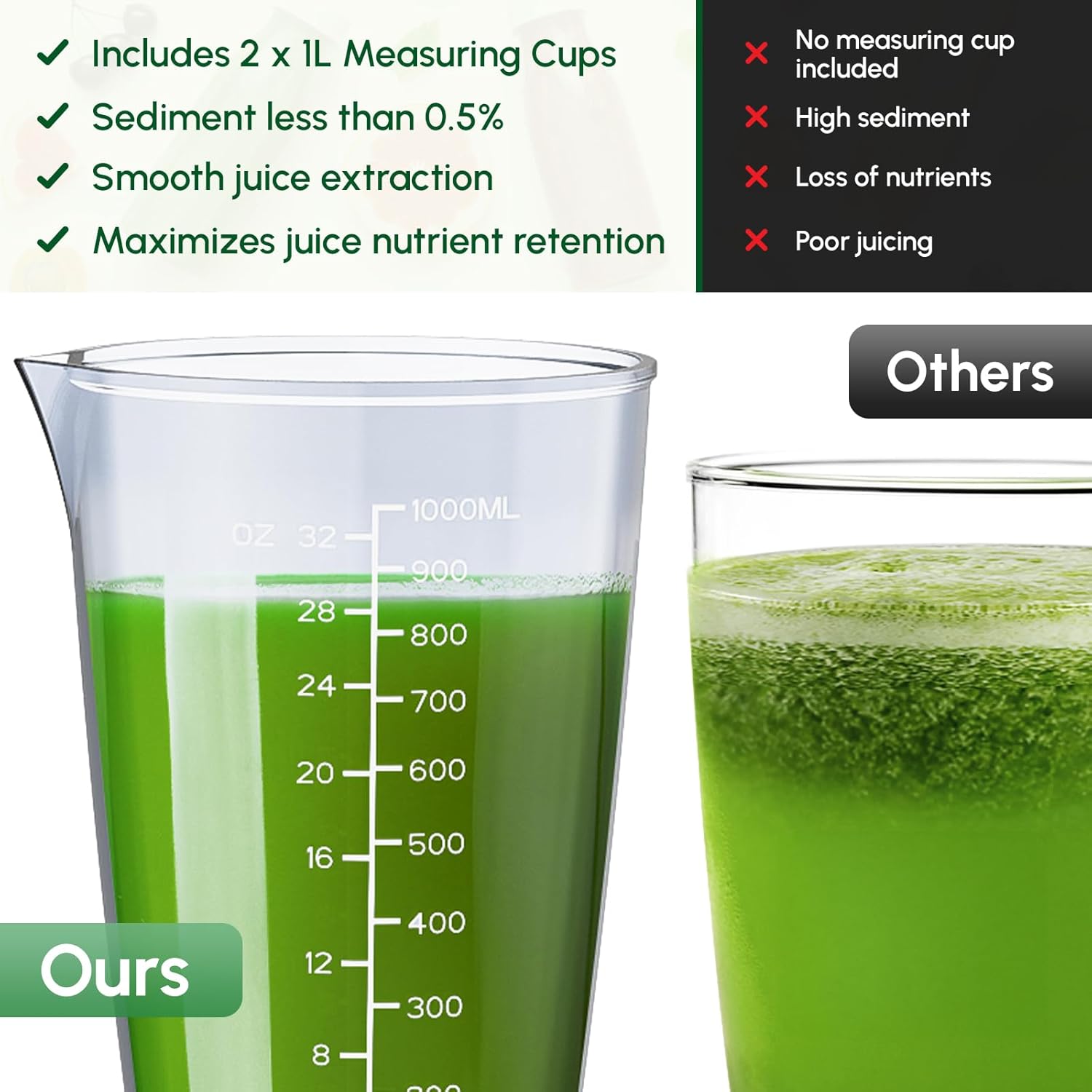 Masticating Juicer Attachment for KitchenAid Stand Mixer, Cold Press Slow Juicer with 4.9" Large Feed Chute for Whole Fruits & Vegetables, Includes 2*1L Measuring Cups for Kitchenaid Mixer Attachments
