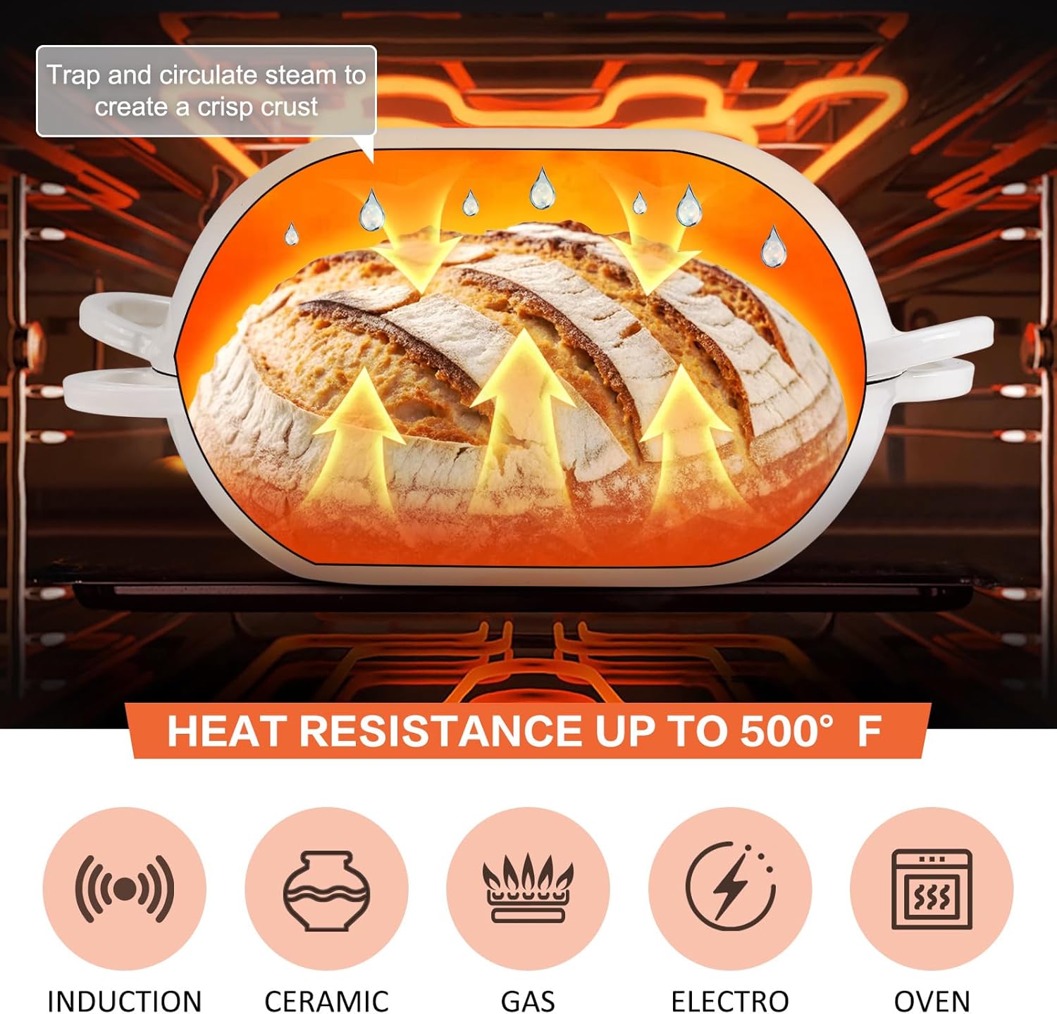 - Even Heat Distribution: This oval bread dutch oven is made of cast iron, which absorbs, retains and distributes heat better than other bakeware, allowing for even heat distribution for consistent baking. From crust to crumb, your loaves will bake with a consistent texture and taste