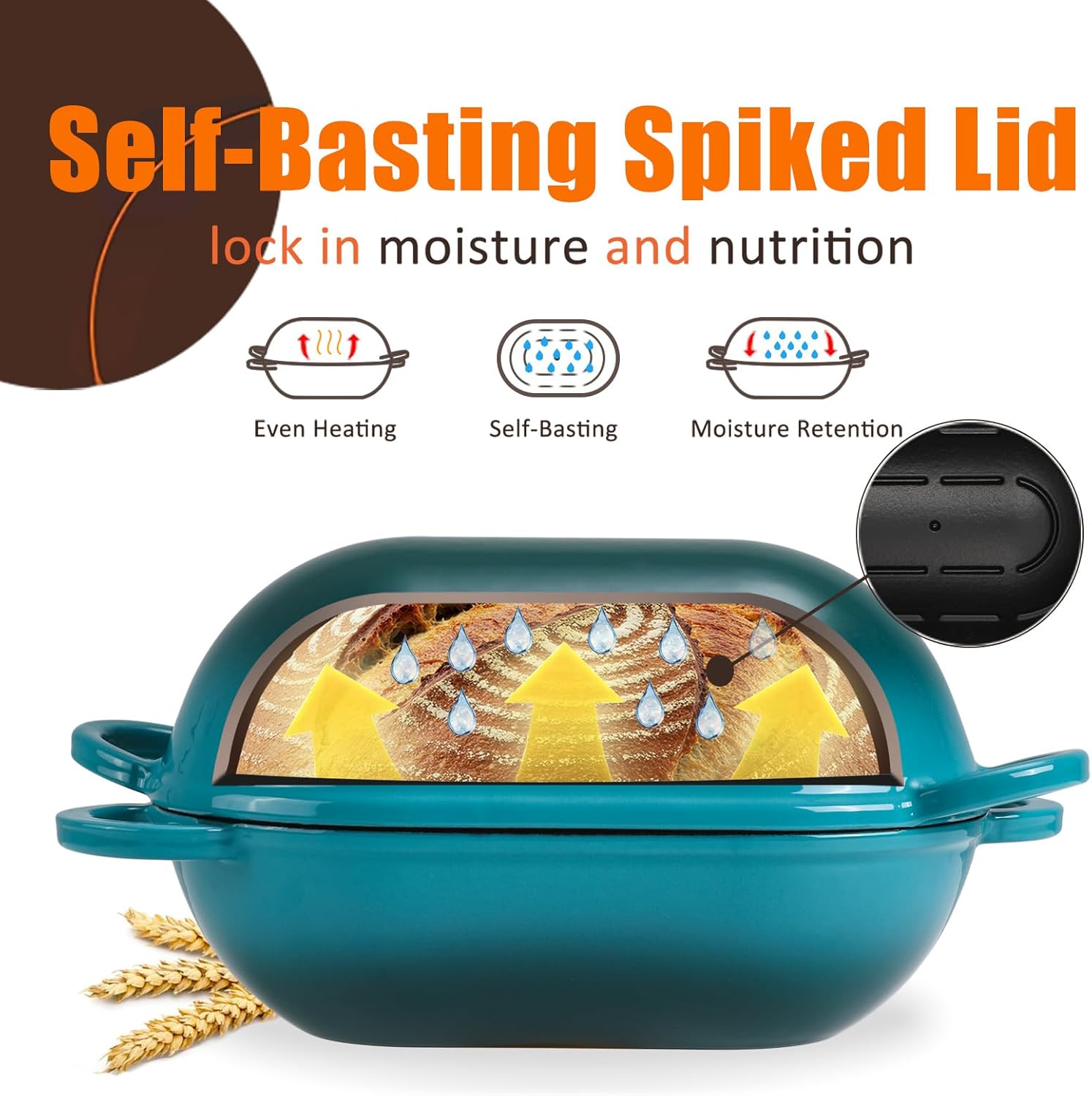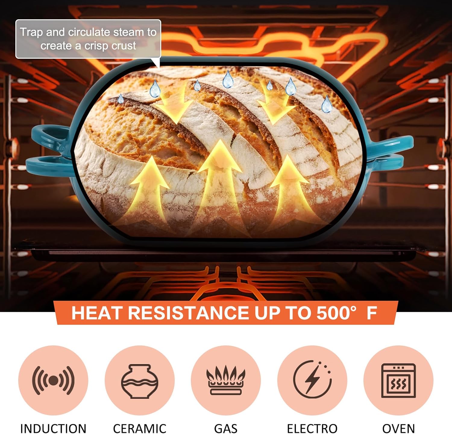 - Even Heat Distribution: This oval bread dutch oven is made of cast iron, which absorbs, retains and distributes heat better than other bakeware, allowing for even heat distribution for consistent baking. From crust to crumb, your loaves will bake with a consistent texture and taste