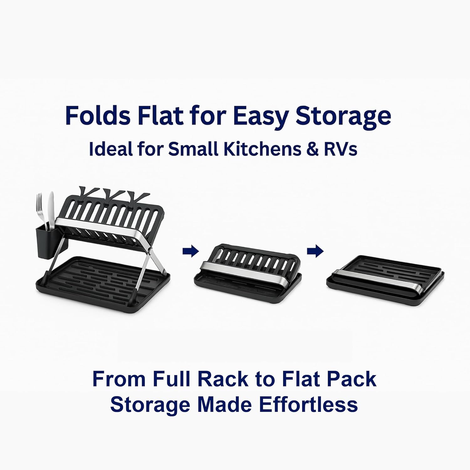- ✅ Easy Clean & Storage: All components are fully detachable, making cleanup a breeze. Simply remove the drip tray, utensil holder, and dividers for quick washing, either by hand or in the dishwasher. This collapsible dish drying rack is lightweight and portable, folding flat for easy storage in a cabinet or under the sink. Whether you need a compact dish rack drain setup or reliable dish drainers for kitchen sink use, it’s a stylish and practical solution for everyday dish drying.