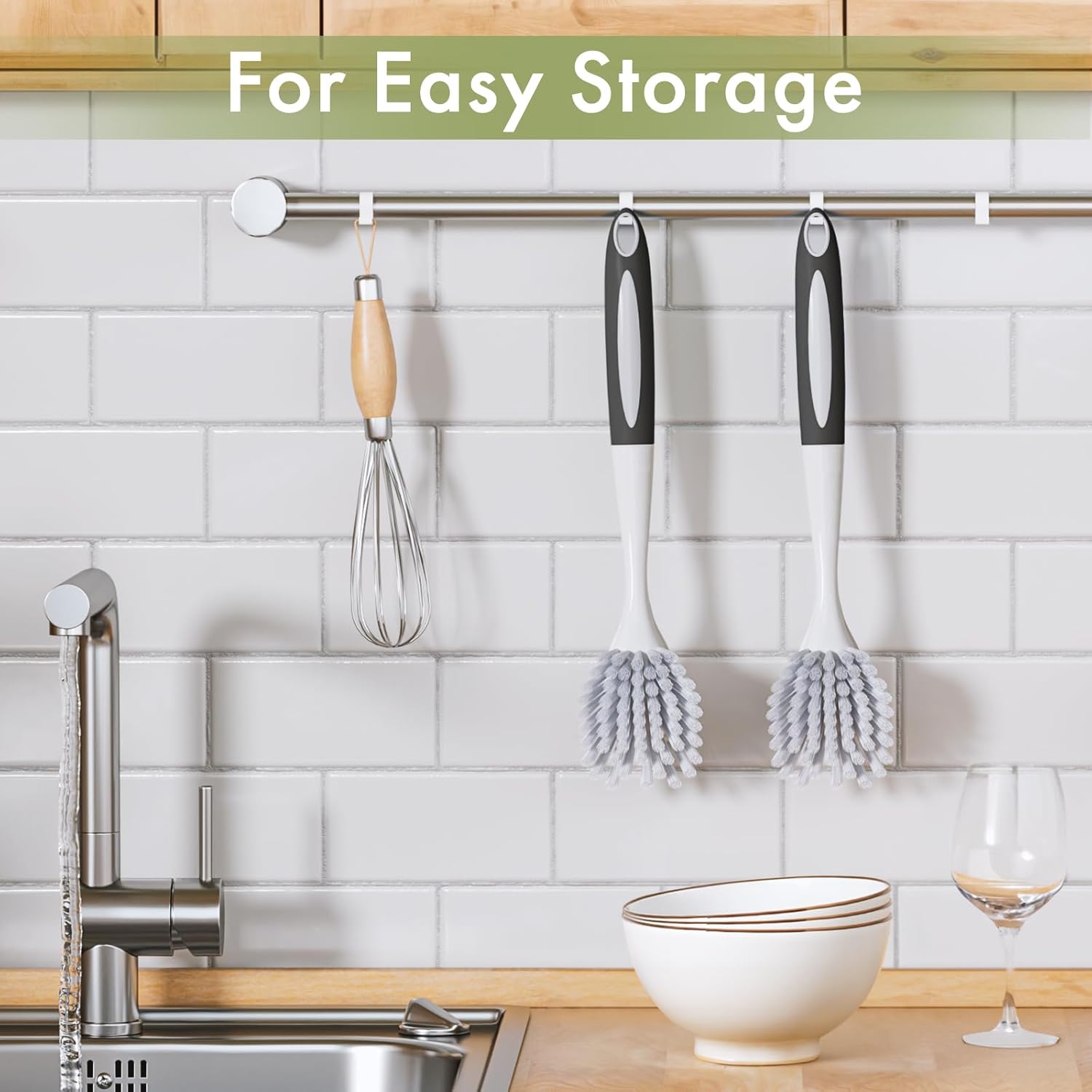 Amazer Dish Brush with Handle, 2 Pack Kitchen Scrub Brushes for Cleaning, Dish Scrubber with Stiff Bristles for Sink, Pots, Pans