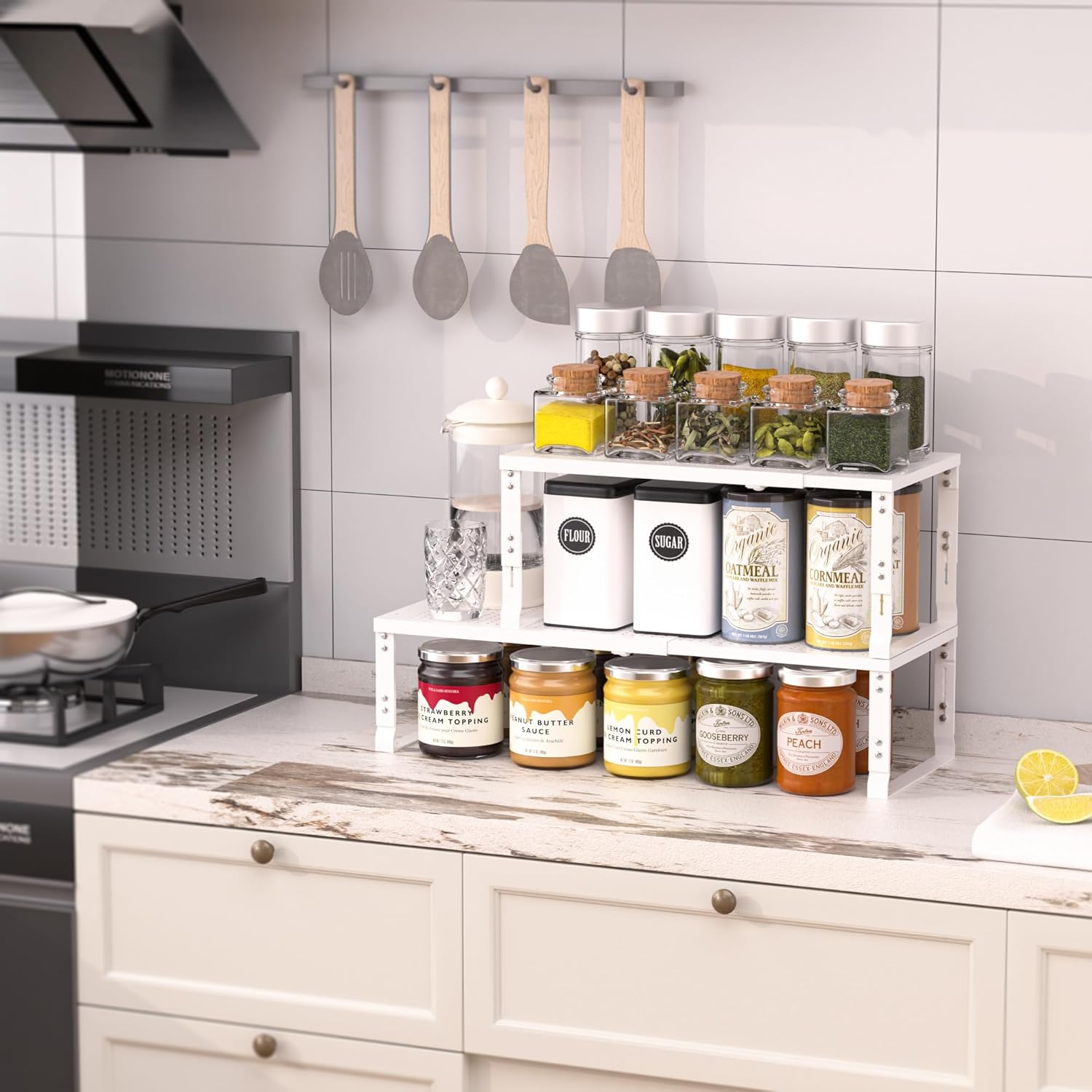 Heavy-Duty Adjustable Metal Shelf Organizer - Expandable & Stackable Pantry Storage Rack for Kitchen, Bathroom, RV, Cabinets(1 Pack/White, Medium)