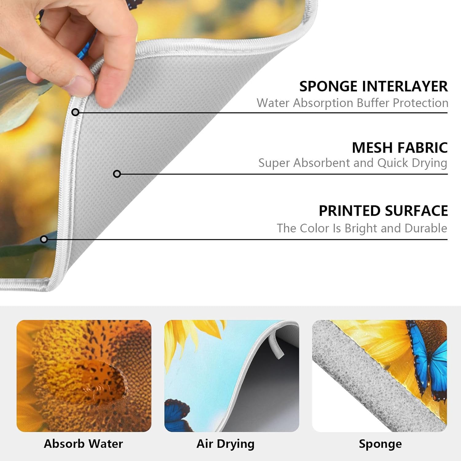 Blooming Sunflowers Blue Butterfly03 Dish Drying Mat for Kitchen Counter Absorbent Microfiber Large Drying Pad Dish mats for Kitchen Countertops 18 x 24 Inch
