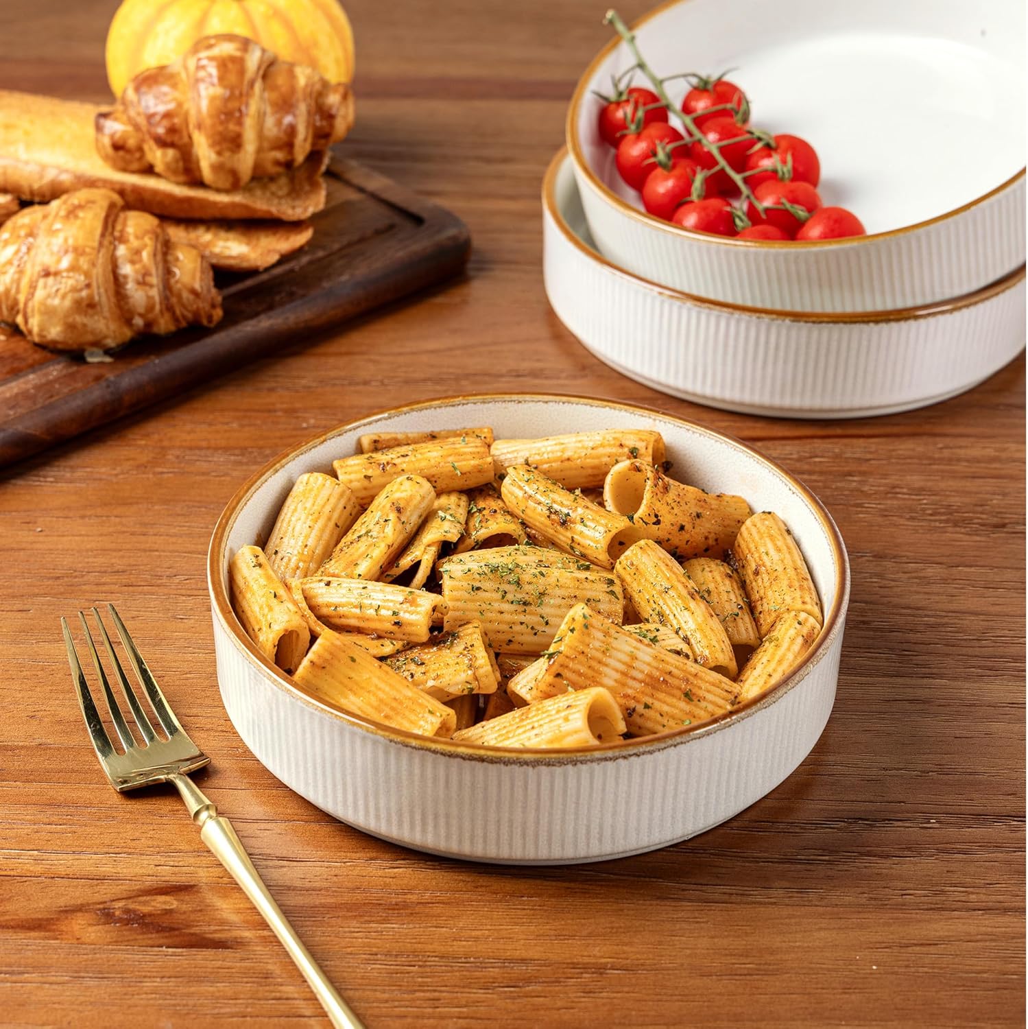 - Premium Stoneware Set of 6 Deep Pasta Bowls (7.5" Wide): Enjoy ample serving space with these perfectly sized 7.5-inch wide pasta bowls, The set includes 6 bowls.Perfectly designed not just for pasta, but also ideal for serving salads, fruits, oatmeal, cereal, soups, rice bowls, desserts, and more â from breakfast to dinner.