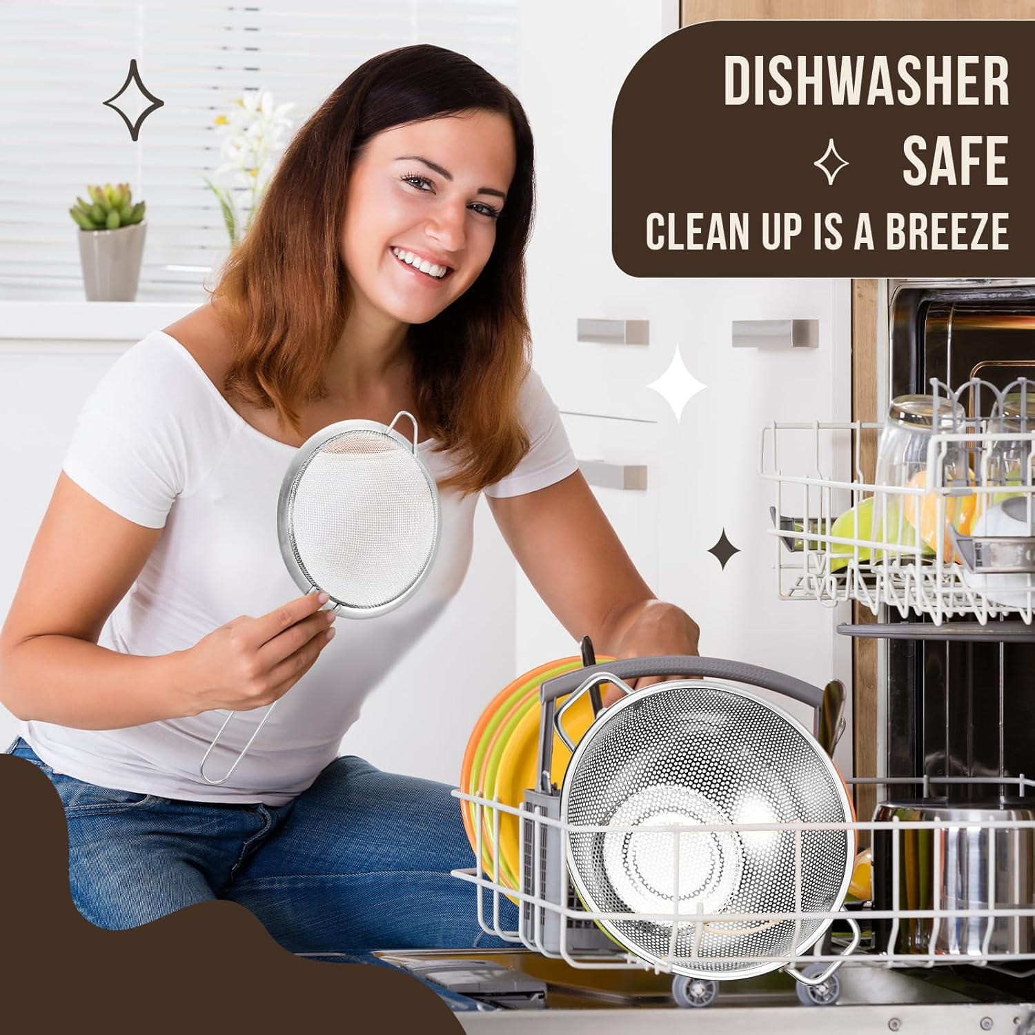 - Delicate and Ingenious Design: the metal strainers and colanders are designed with handles and fine meshes, can help you drain water faster, the handles can help you grip the filter strainers more firmly