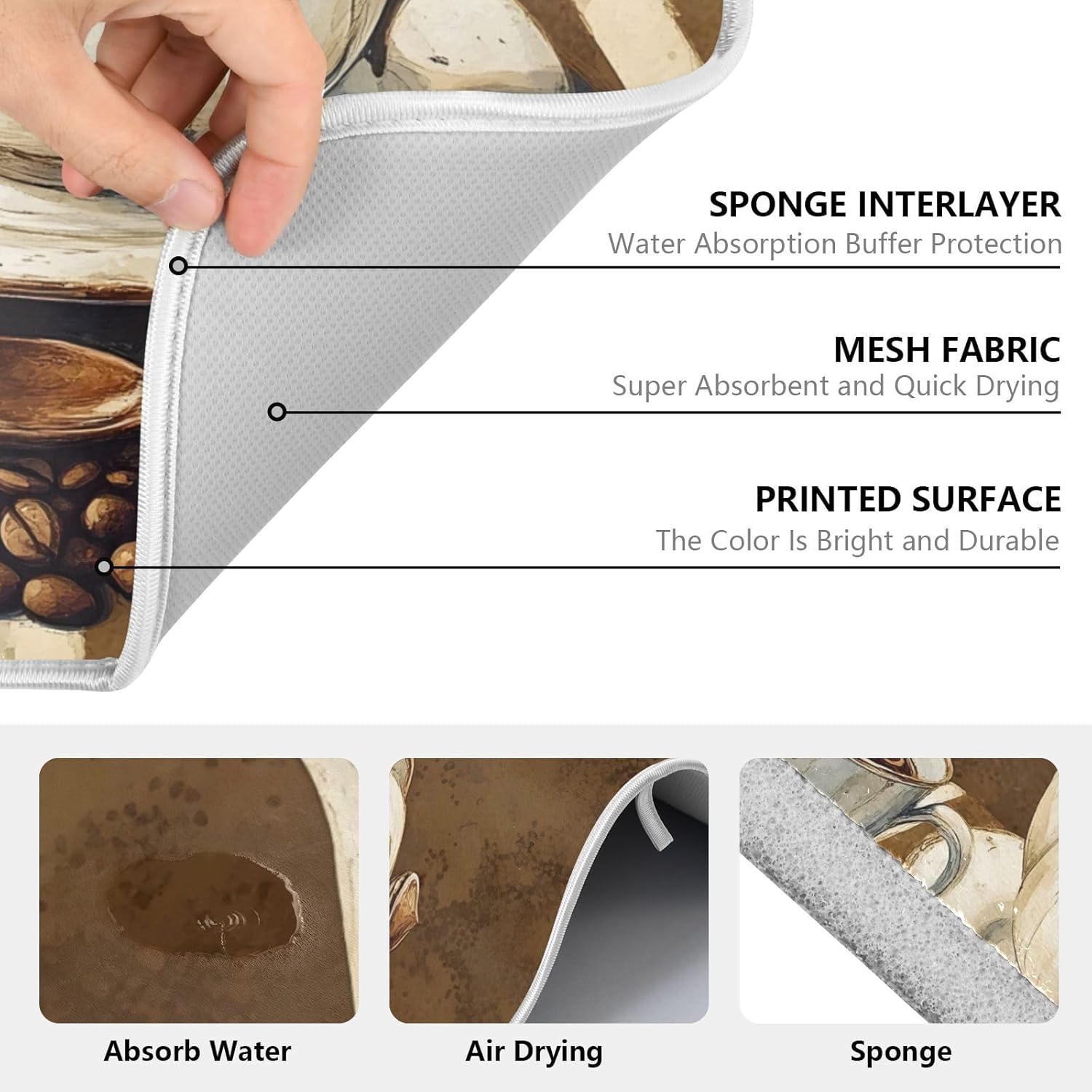 Coffee Themed Dish Drying Mat for Kitchen Counter Absorbent Microfiber Small Drying Pad Dish mats for Kitchen Countertops 16 x 18 Inch242
