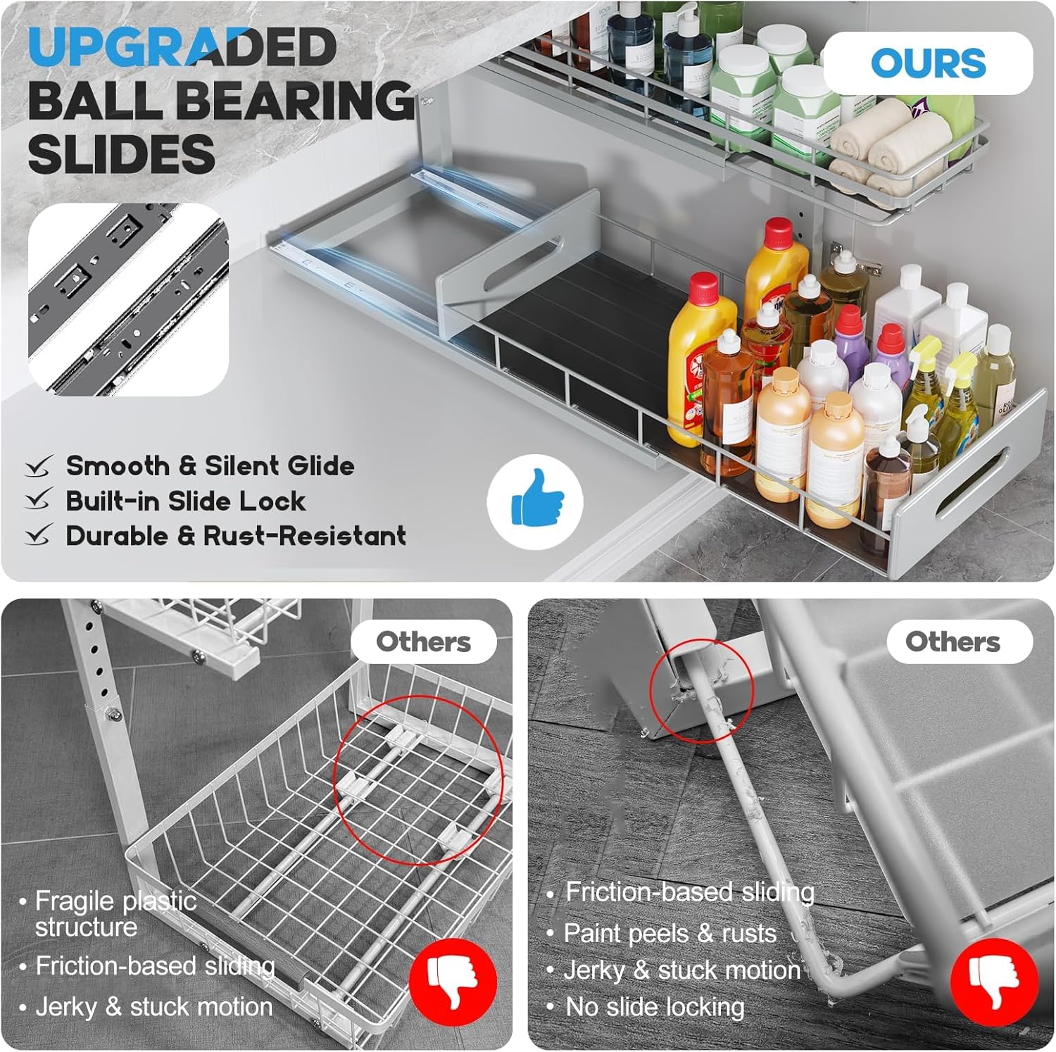 - Special Feature : 2-Tier Pull-Out Design, 5 Adjustable Heights, Classic Wire Frame, New-gen Ball Bearing glide