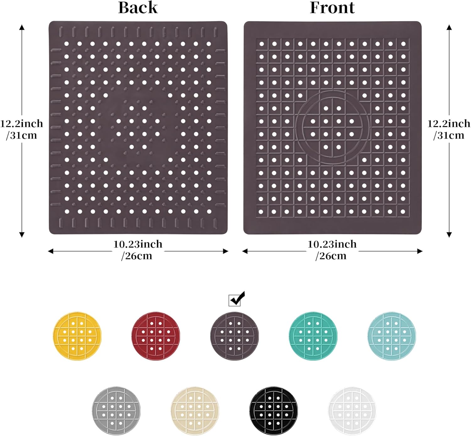 - 【Rubber Sink Drain Mat】 Made from durable rubber material, this sink mat is soft and resilient. Its flexibility allows to be folded and stored without leaving any creases, while its tear-resistant properties ensure it remains intact even with long-term use. Also, the kitchen sink mat features a special non-slip design on its surface, enabling it to firmly adhere to various countertops, providing stable support and preventing slipping.