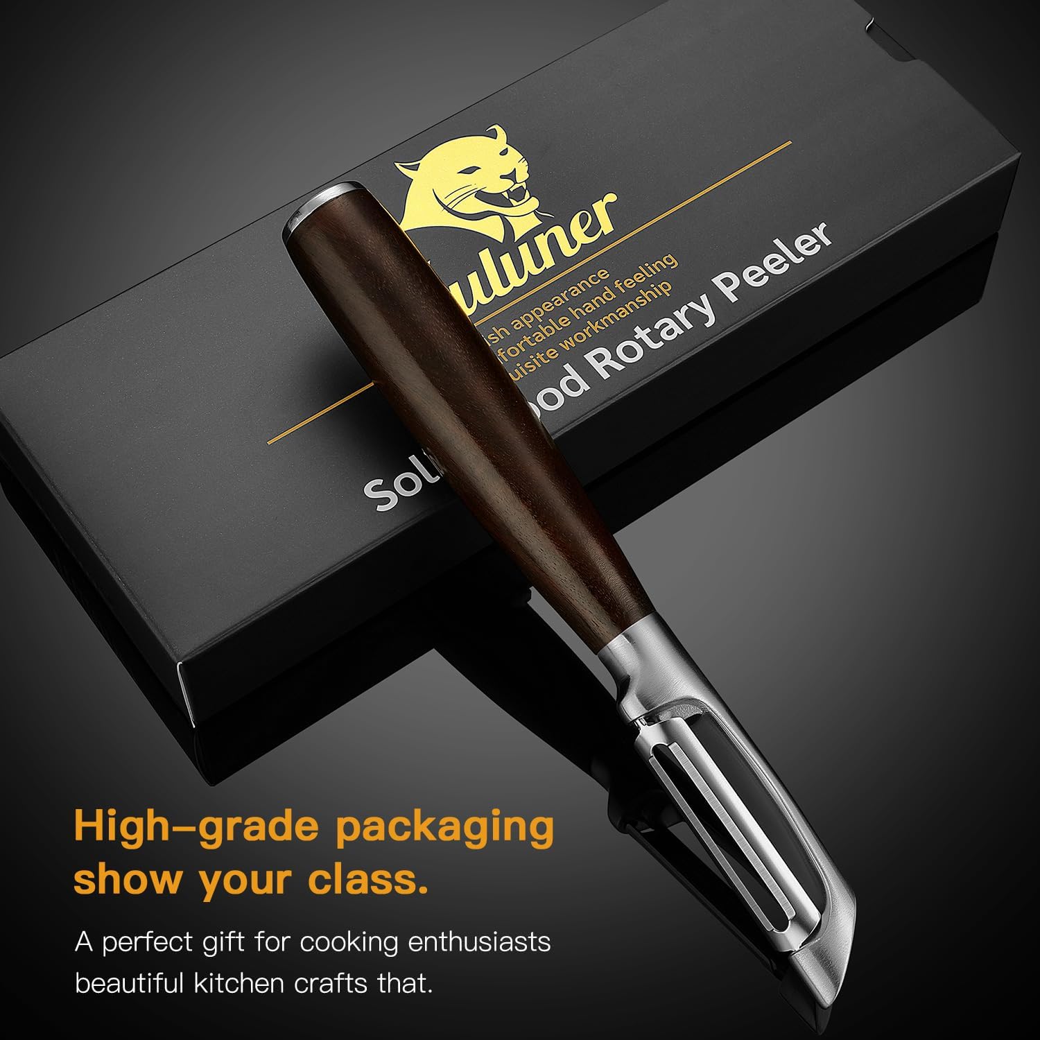 Premium I Type 304 Stainless Steel Multifunctional Kitchen Peeler Real Wood Handle Ultra Sharp Blade Vegetable Potato Apple(Carbonized Wood)
