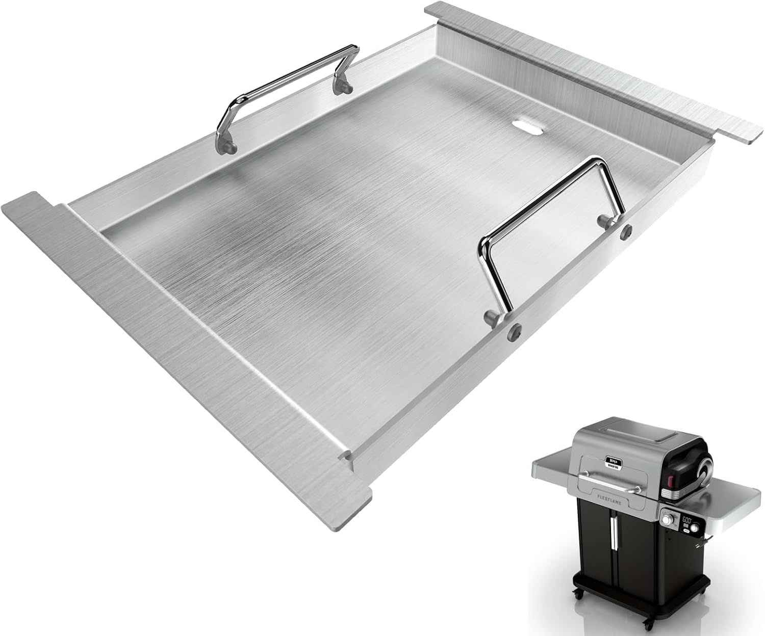 - Dual-Heat Mastery: Unlock simultaneous cooking power with your ninja flexflame grill – grilling on the grill while cooking food on the stainless steel griddle plate. This accessories for ninja flexflame grill pan eliminates meal delays,Allowing you to make more of your favorite foods in one sitting. maintaining perfect heat zones for 2-in-1 culinary creativity. A game-changer in Ninja accessories -- no more batch cooking or flavor crossovers.