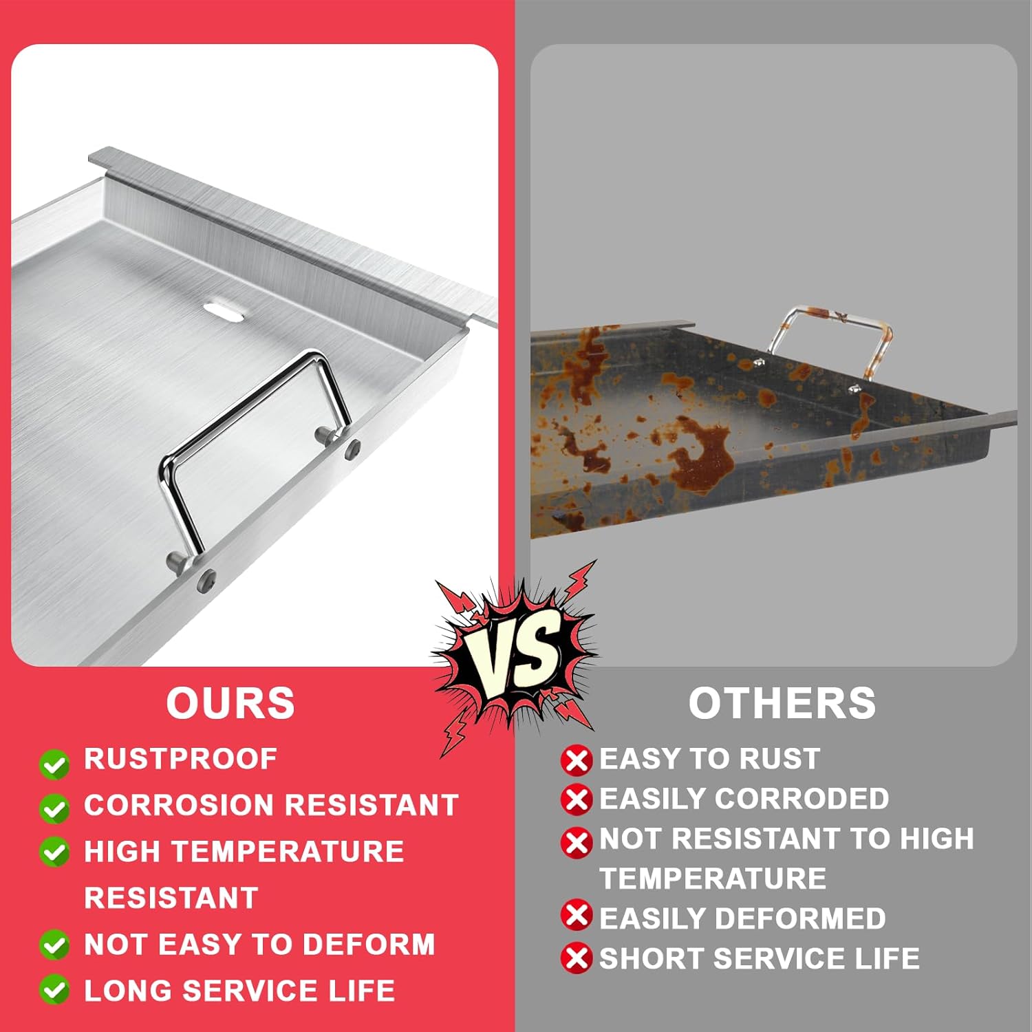 - Rustproof & Durable: Master outdoor cooking with the stainless steel griddle plate for Ninja Woodfire Flex Flame Grill -- a must-have for Ninja Flex Flame Grill accessories. Crafted from higher quality stainless steel, Rust-resistant surface treatment, and can perfectly withstand high temperatures, grilling, or pancake flips. Perfectly sized for Ninja Woodfire grills, it's the ultimate rust-proof companion for campfires, BBQs, or backyard feasts.