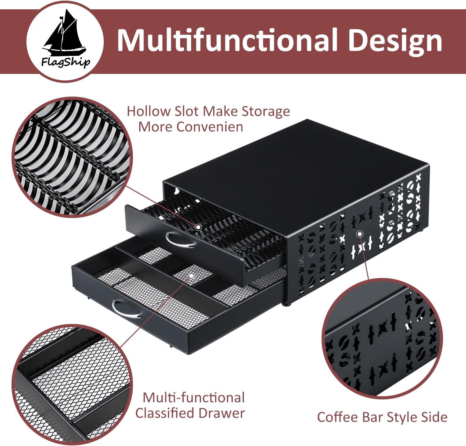 - 【Elegant, Sleek and Versatile】Flagship coffee pod hloder adopt modern design and easy to blend into the coffee bar.Coffee Bar Style Side makes your coffee corner look even more elegant.