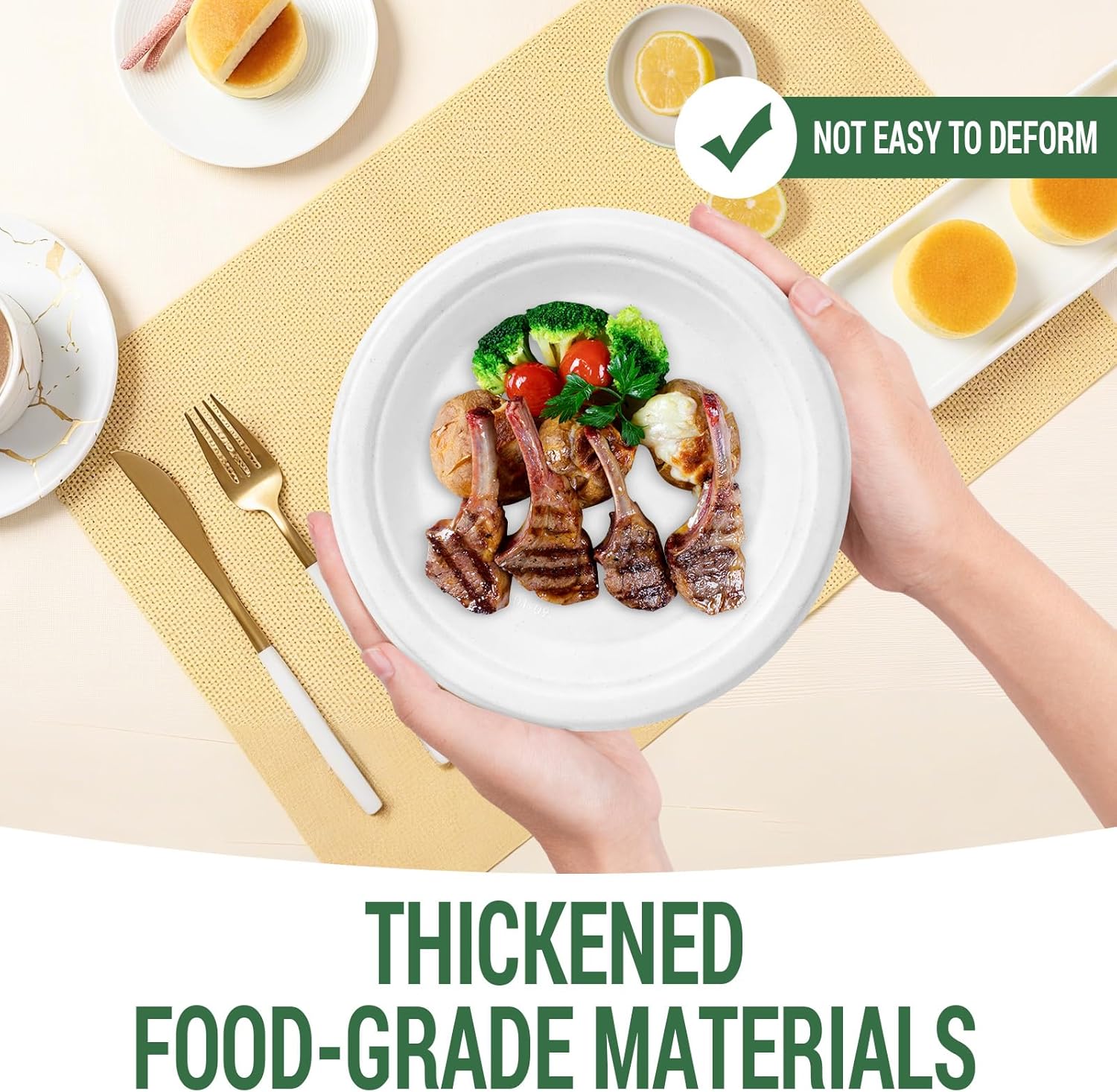 - Heavy Duty & Microwavabe: No need to worry about disposable paper plates getting bent by food. They're able to resist oil, sogginess, bending, and knife cuts. Plus, they're safe to use in the microwave, and can be used for hot or cold.