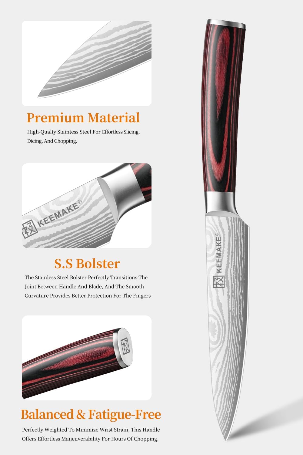 KEEMAKE Kitchen Utility Knife, 5 Inch Chef Knife,Ultra Sharp High Carbon Stainless Steel,Tomato Knife for Fruit and Vegetable Cutting with Ergonomic Handle, Paring Knife for Kitchen