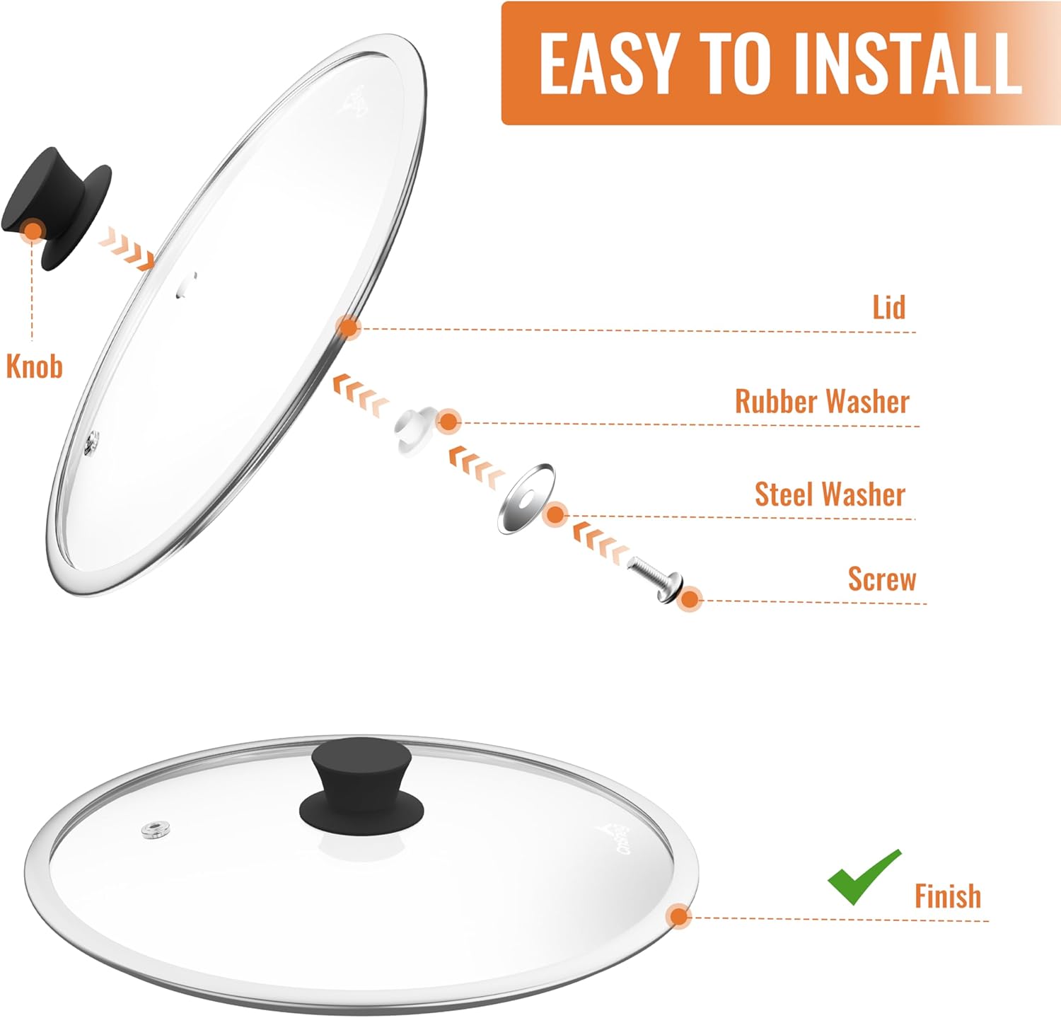 - STRONG HD TEMPERED GLASS: With premium high-definition and strong tempered glass, this durable glass lid for pots and pans ensures even heat distribution and withstands high temperatures. Perfect for pots and pans, it offers a clear view of your cooking without lifting.