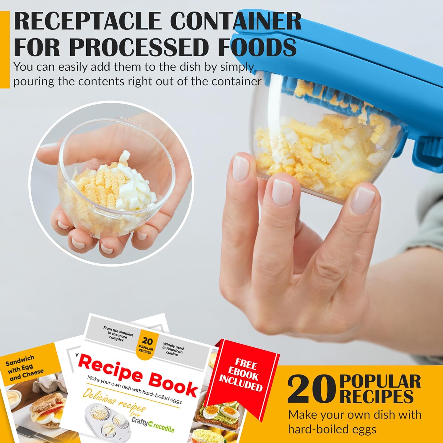CraftyCrocodile Egg Slicer for Hard Boiled Eggs - 3 Slice Modes Egg Cutter, Heavy Duty, Stainless Steel Dicer - Kitchen Chopper Tool for Strawberry, Mushroom, Grape, Cherry Tomato - Blue