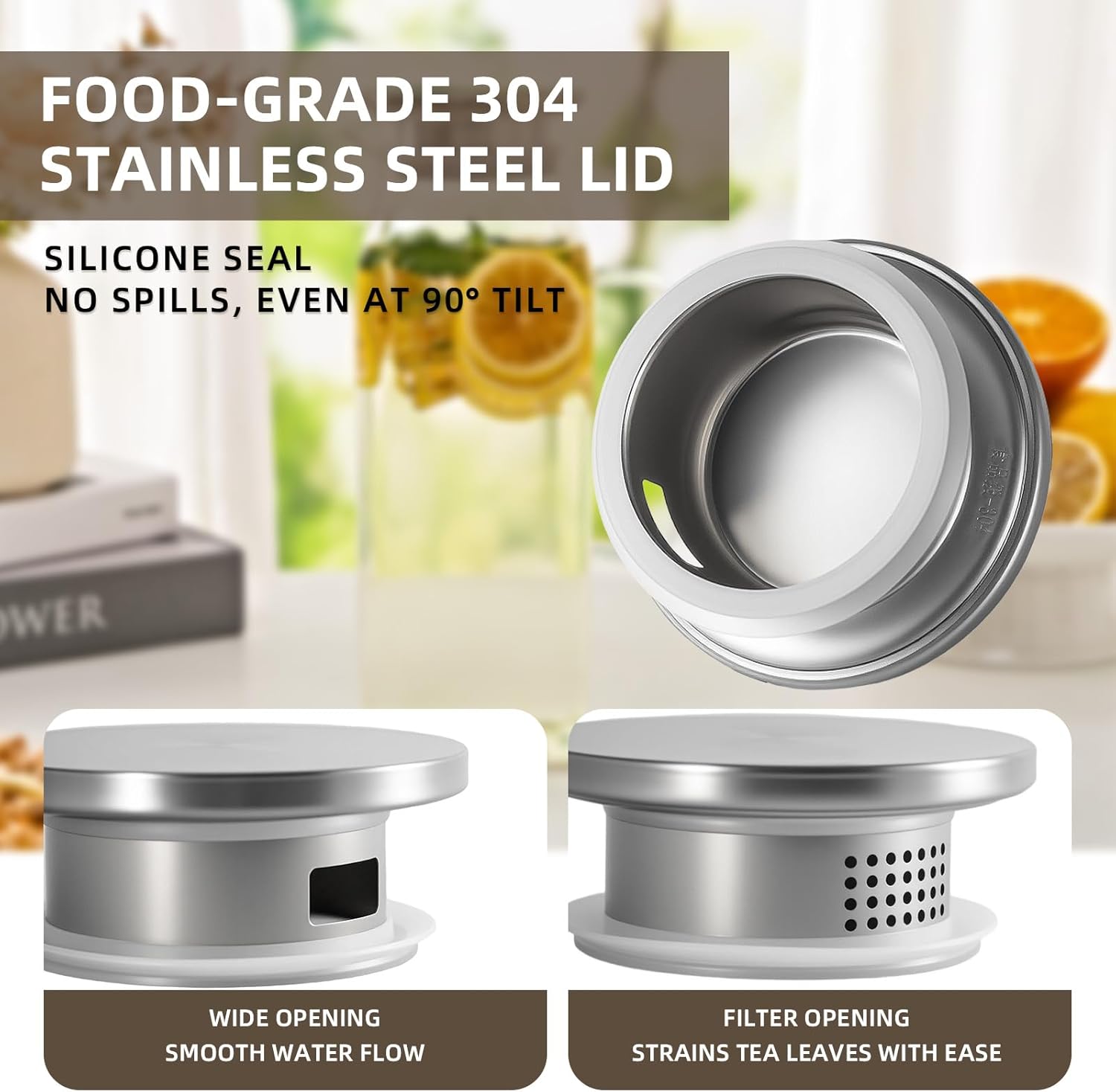 - Functional rust-proof stainless-steel lid: 304 stainless steel lid features 2-way outlets with large holes and small holes for filtration. It’s quite multi-functional for family use. The food-grade rubber ring makes sure the lid is tight and does not fall off while pouring.