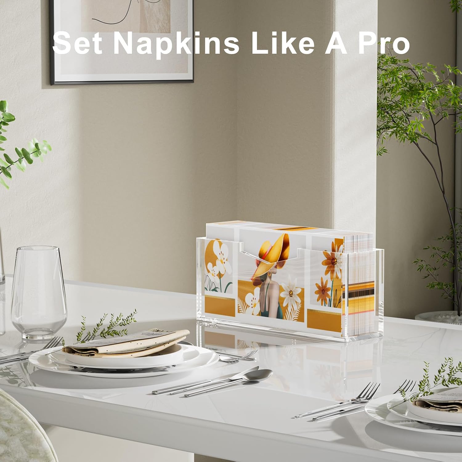 HELPLEX Clear Acrylic Guest Towel & Napkin Holder - Waterproof Splash-Proof Vertical Design for Bathroom, Kitchen, Dining Table - Home Hotel Office Organizer (1-Pack)