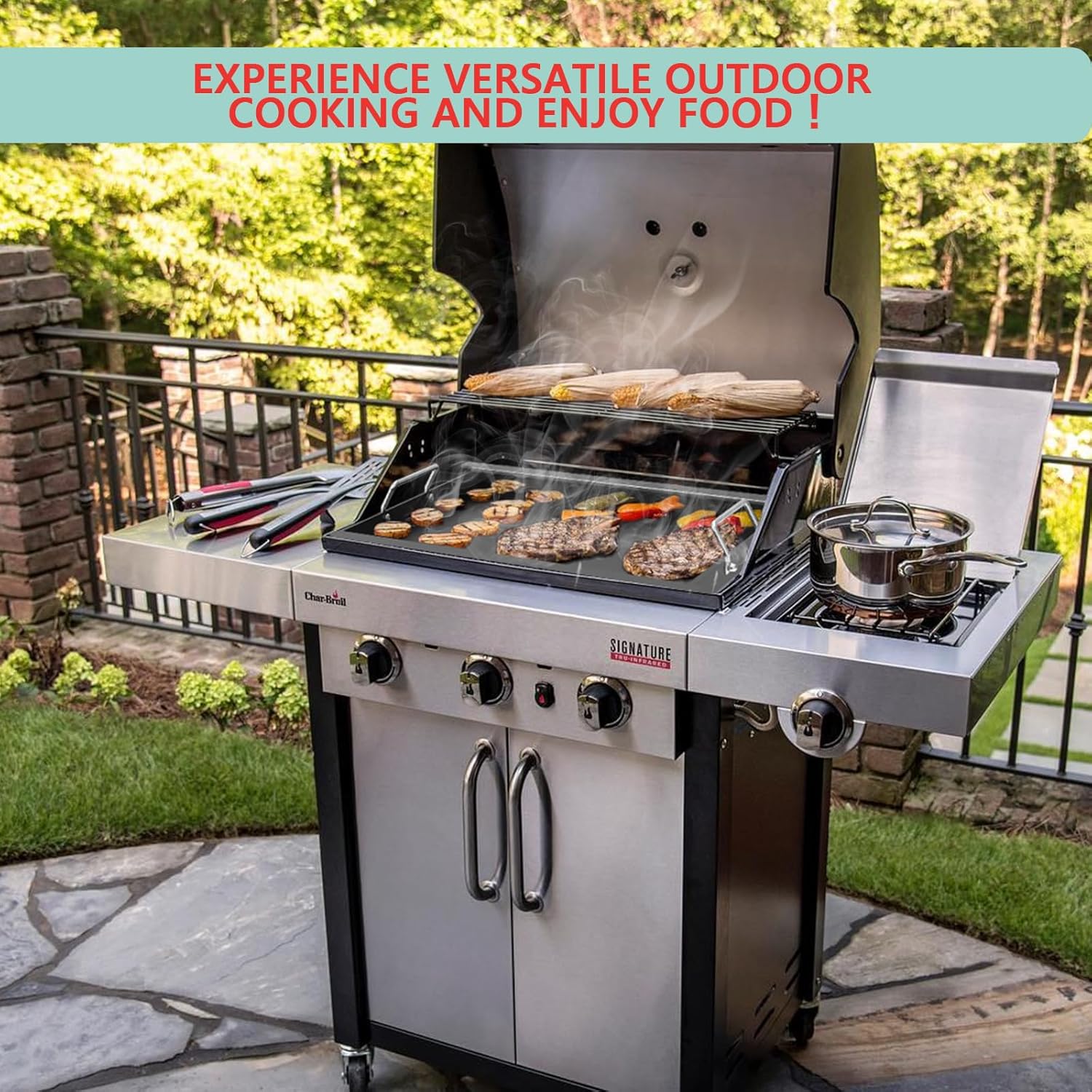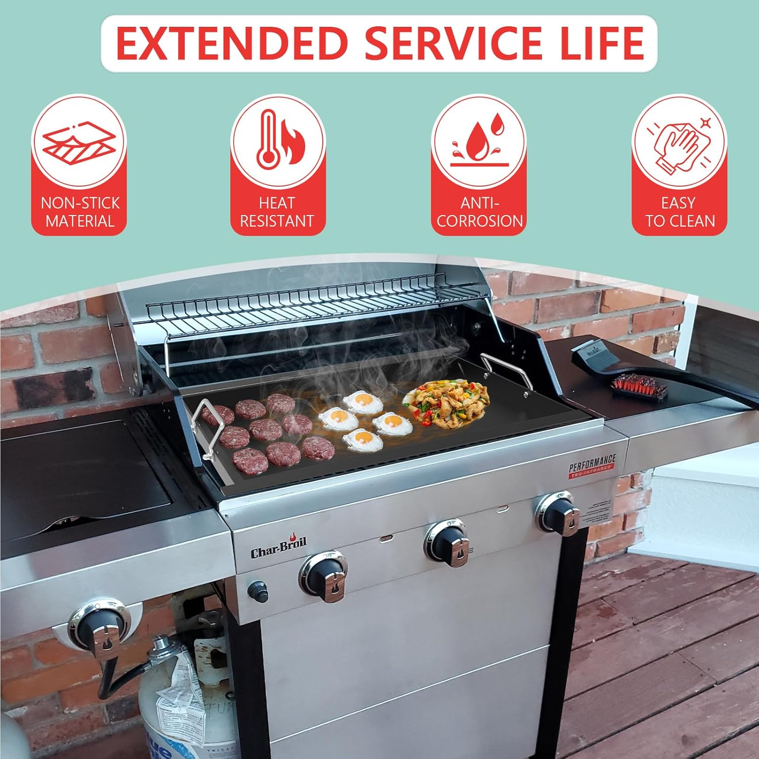 - Versatility: Experience versatile outdoor cooking and enjoy the benefits of a true flat griddle on your outdoor gas grill. A culinary powerhouse that revolutionizes your cooking experience both indoors and outdoors. perfect for sizzling crispy bacon, grilling juicy burgers and savory hot dogs, or even steaming and stir-frying multiple dishes simultaneously—no more waiting around for your meals!