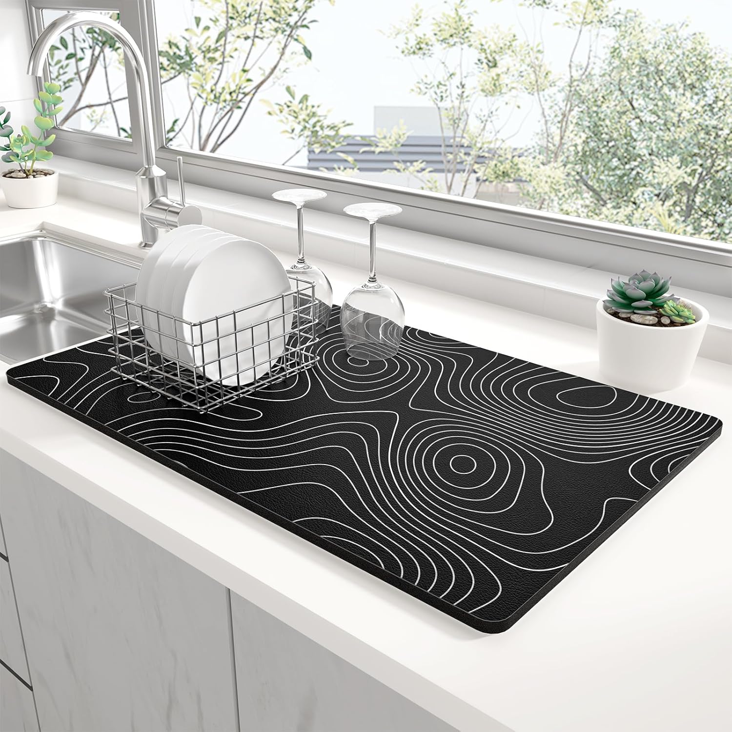 - Stylish Kitchen Upgrade:Cute dish drying mat with boho, floral, or marble designs elevates any kitchen style. Vibrant fade-resistant colors complement farmhouse/modern kitchens.This stylish kitchen decor keeps kitchen counter dry while adding a chic touch