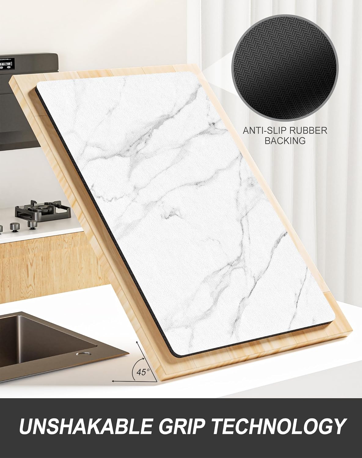 Rnivvi Dish Drying Mat for Kitchen Counter, 12 x 19" Cute Marble Super Absorbent Draining Pad, Non-Slip Heat Resistant Coffee Bar Mats for Coffee Machine Station Accessories, White Dish Rack Pad