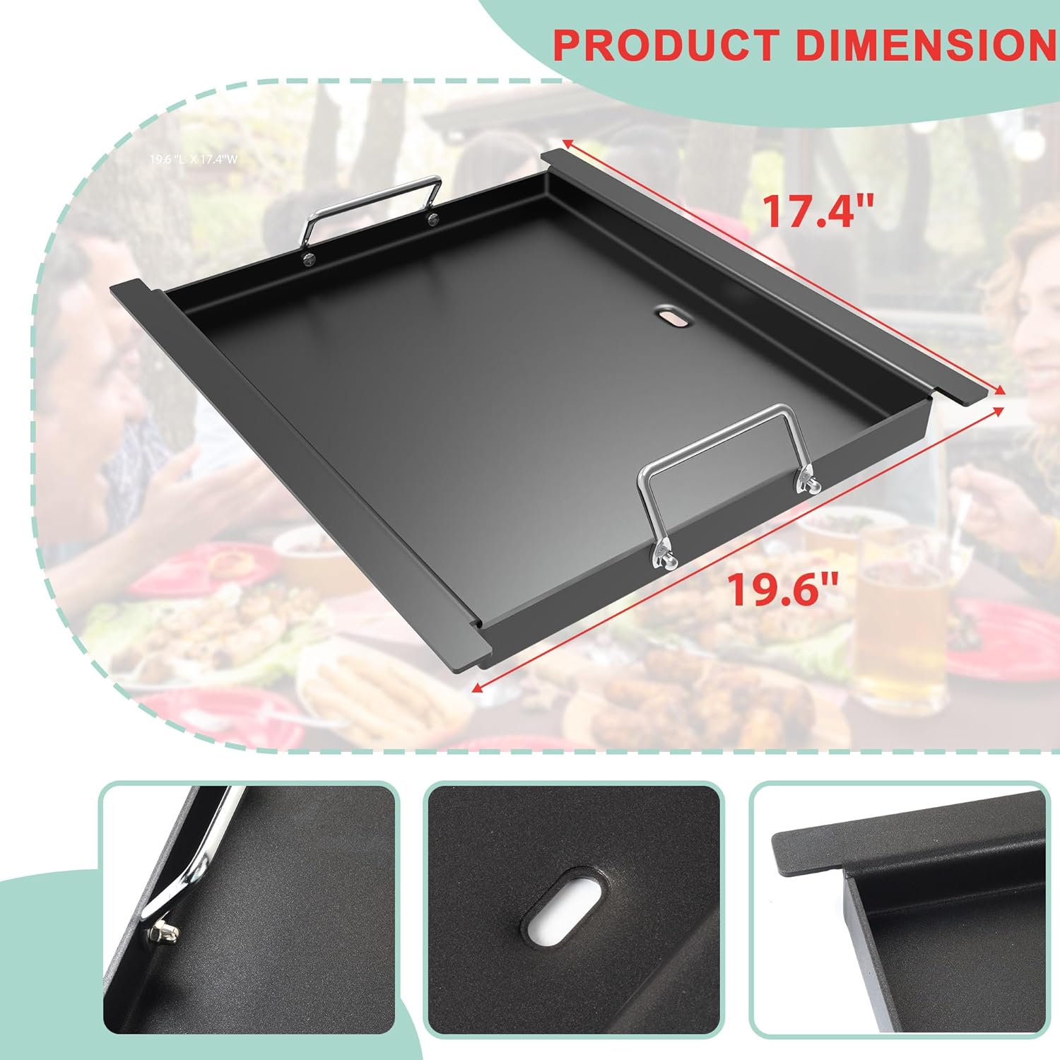 - Convenient Design: Convenient Design: Equipped with carrying handle + silicone gloves can help you move from the table top to the gas grill, easy to carry and transport, at the same time, our surface has grooves to help you better collect and drain grease,Strategically designed raised edges. Provide reliable protection to hold ingredients securely on the cooking surface. No more worrying about vegetables rolling off during a quick sauté or sauce spilling over the surface when searing a steak!