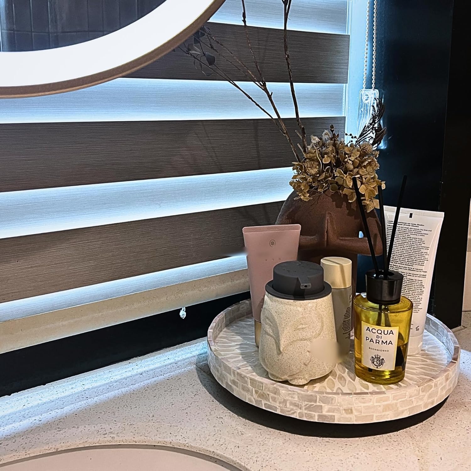 12.5" Lazy Susan for Table Top – Mother of Pearl Spinning Turntable Serving Tray, Marble Lazy Susan Organizer for Dining Table Centerpiece, Kitchen Island Decor, Bathroom Counter, Outdoor Use (White)