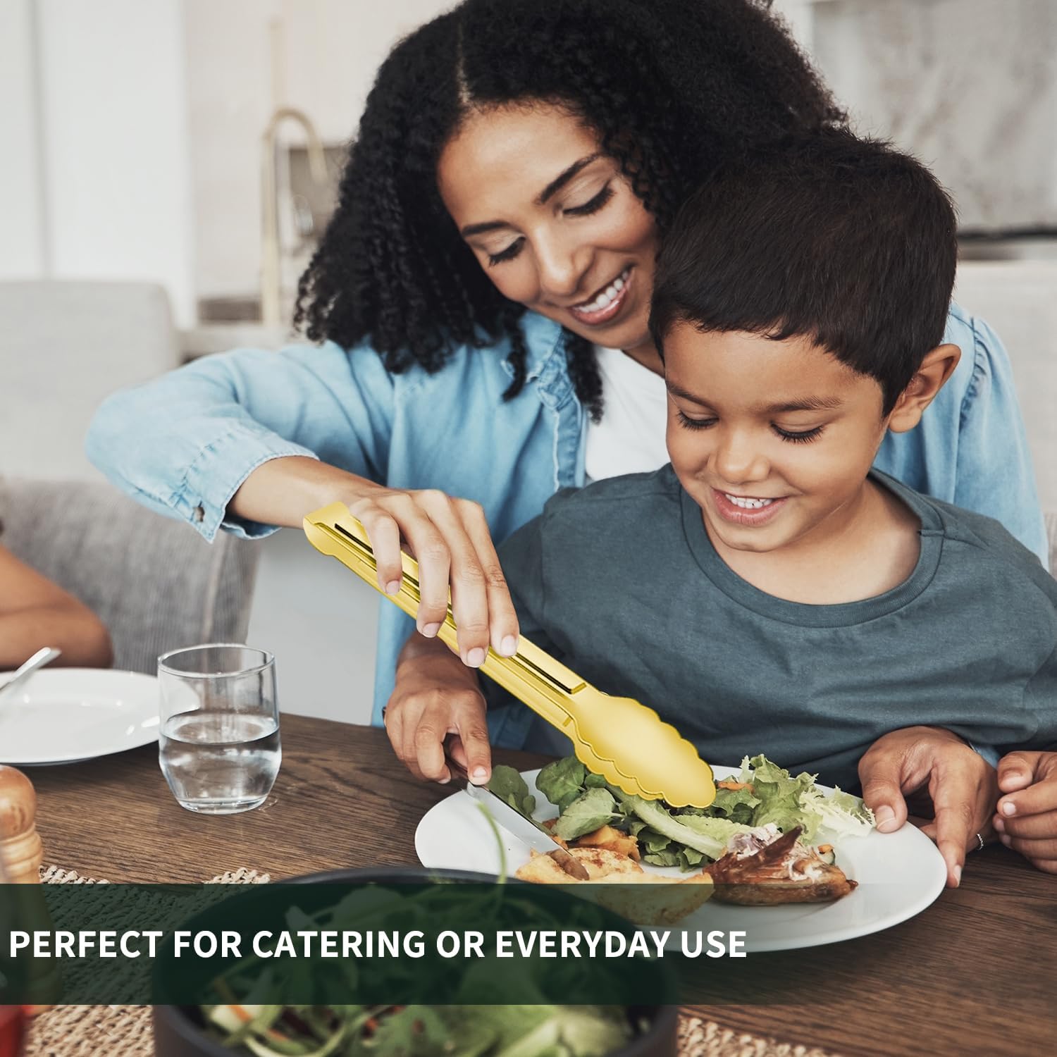 4 Pack 9 Inch Gold Tongs for Serving Food, Gold Serving Tongs Buffet Tong Stainless Steel Utensils, Metal Kitchen Tong for Salad, Steak, Appetizer, Snack and Small Food (4)