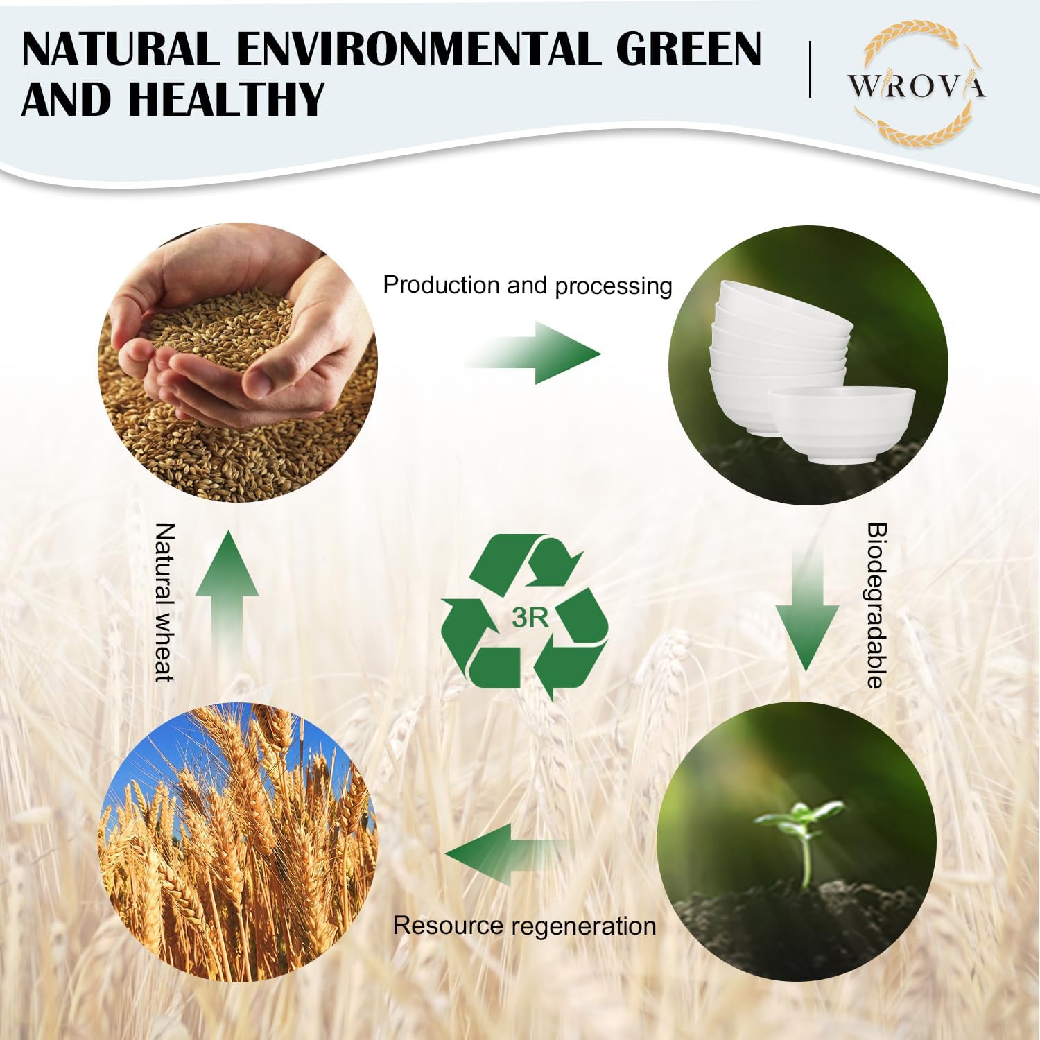 - 【Wheat Straw Materials】These white 60oz white bowls set of 6 are made of natural organic wheat straw fiber, the material is non-toxic,odorless. There is no plastics and harmful chemical materials. Very healthy and beautiful tableware for your family.