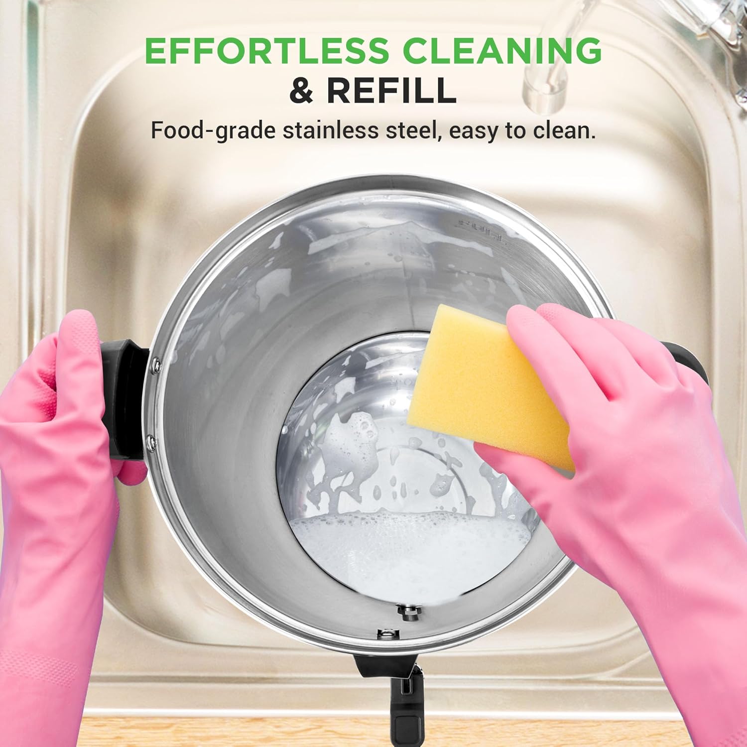 - KEEPS DRINKS HOT AND MESS-FREE - The insulated double-layer design and non-drip tap ensure hot beverages stay warm and pouring is easy. With a safety lock lid and overheat protection, this beverage dispenser offers peace of mind for all your events.