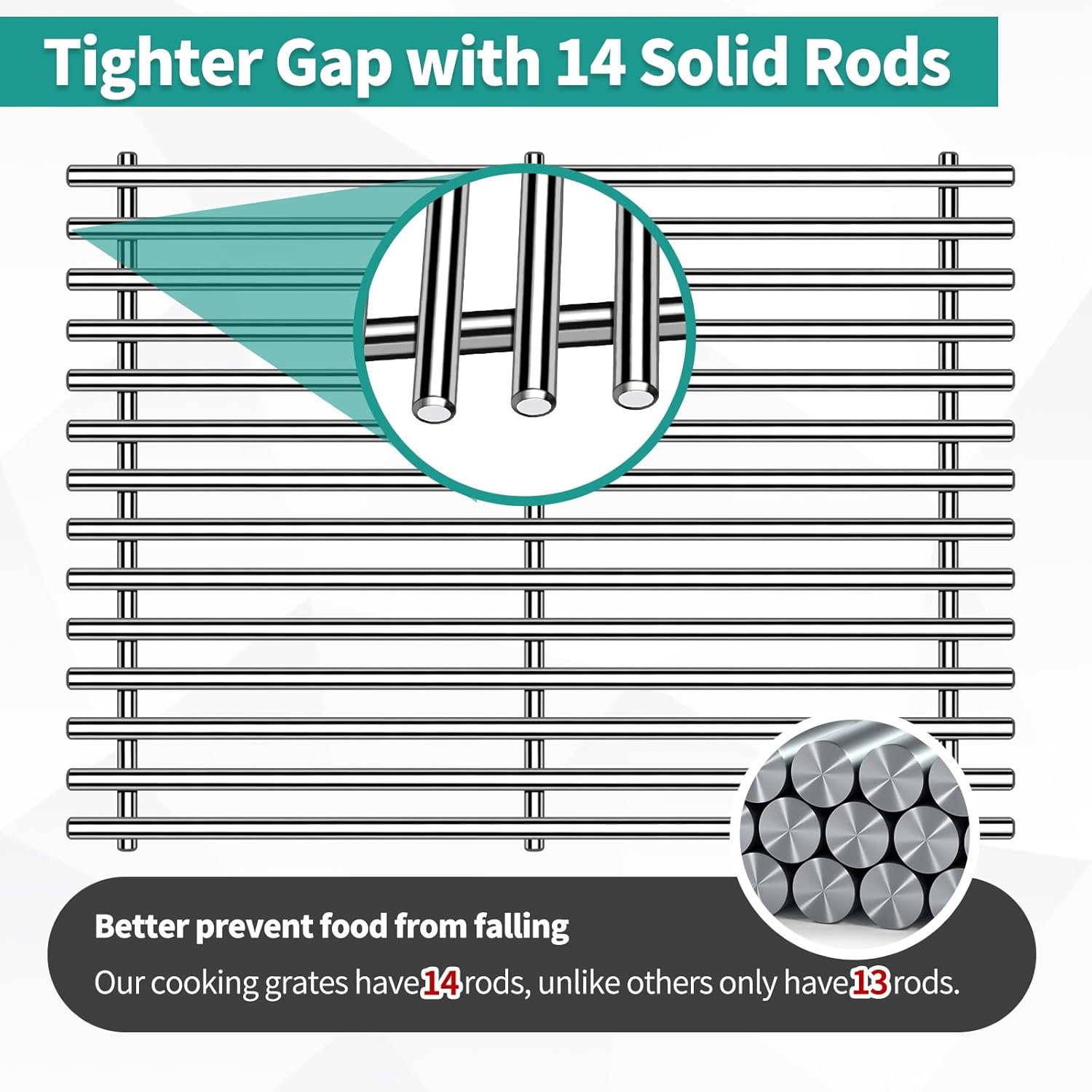 - 【Product Dimension】The size of spirit grill grate is 15" x 11.25" for each grate, 15" x 22.5" in total. We highly recommend please double check the size of your original parts carefully and compare with our size before purchasing.