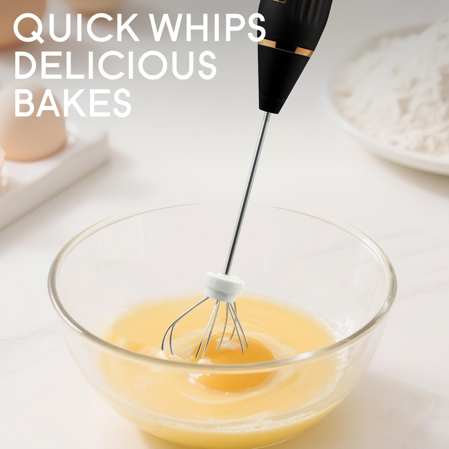 DSP Electric Whisk Rechargeable with Egg whisk milk frothing bar, 3 Speed Adjustable, Milk Frother Handheld for Latte, Cappuccino (Black)