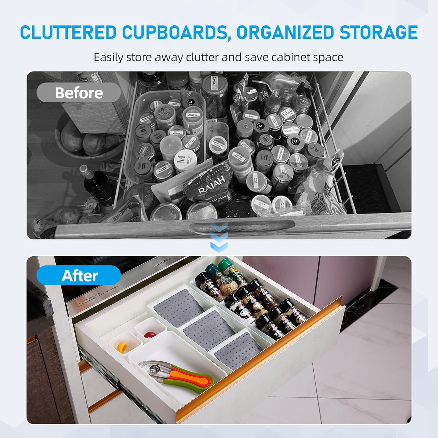 - STRONG AND DURABLE: Ideamake spice rack organizer for drawer is made of high quality plastic and silicone, sturdy and durable, waterproof and moisture-proof, with a long service life