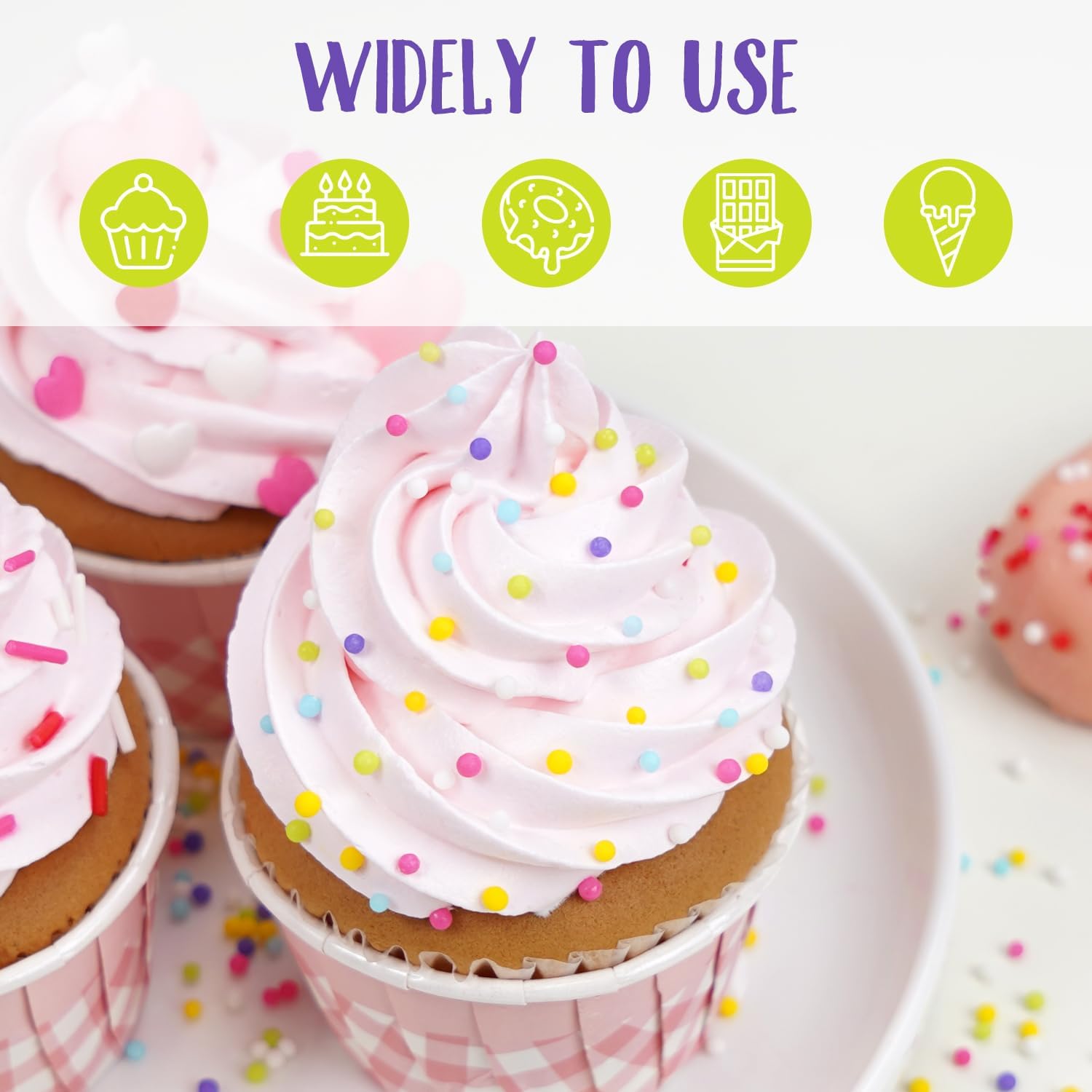 - The Rainbow Nonpareils Sprinkles feature a edible sugar design in the rainbow colors. They can brighten up parties, decorate cupcakes, cakes, donuts, cookies, ice creams, and waffles, making more desserts colorful and perfect.