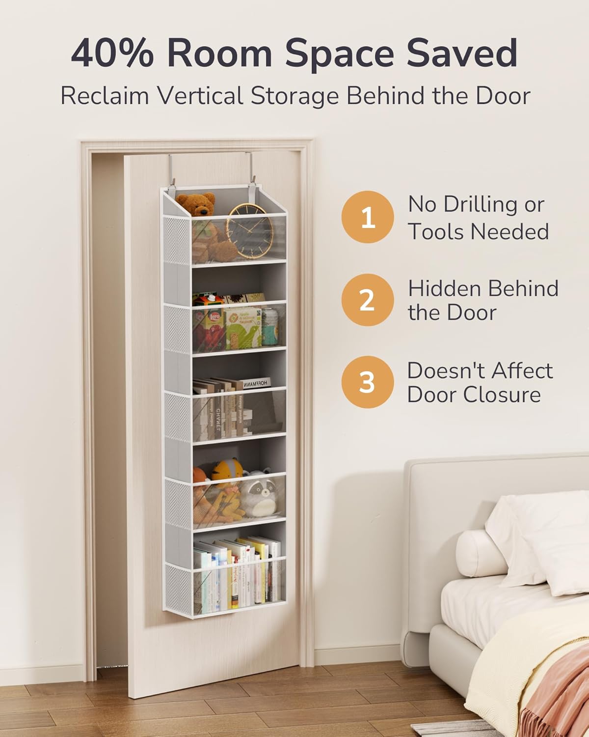 - ăEasy to Accessă: The design of clear PVC window for over the door pantry organizer allows you to find the items you need at a glance, which is convenient and quick, makes it easier for you to access and can also avoid the confusion caused by improper storage