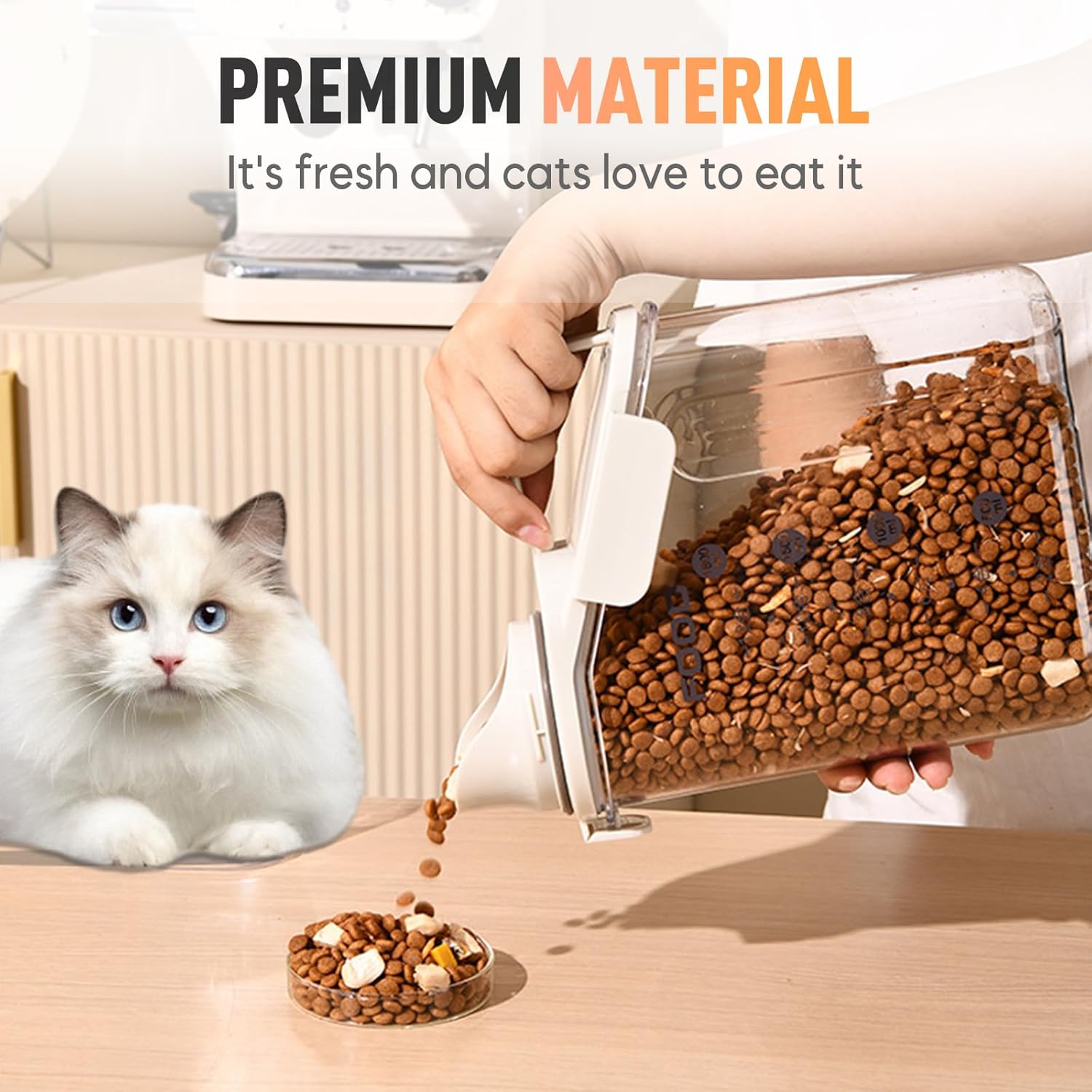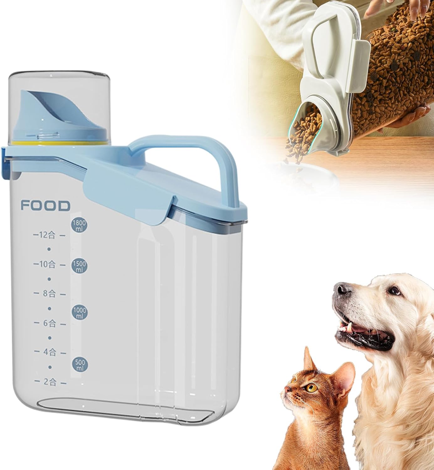 - 【Large Pouring Spout & Measuring Cup】Our portable food container features a bigger spout making it a breeze to dispense your food even with large particles. (The other brand pouring spout is small and pour dog food or other large particles of food get stuck). Comes with a measuring cup which is easy to screw on the spout, to keep your food fresh and dry.