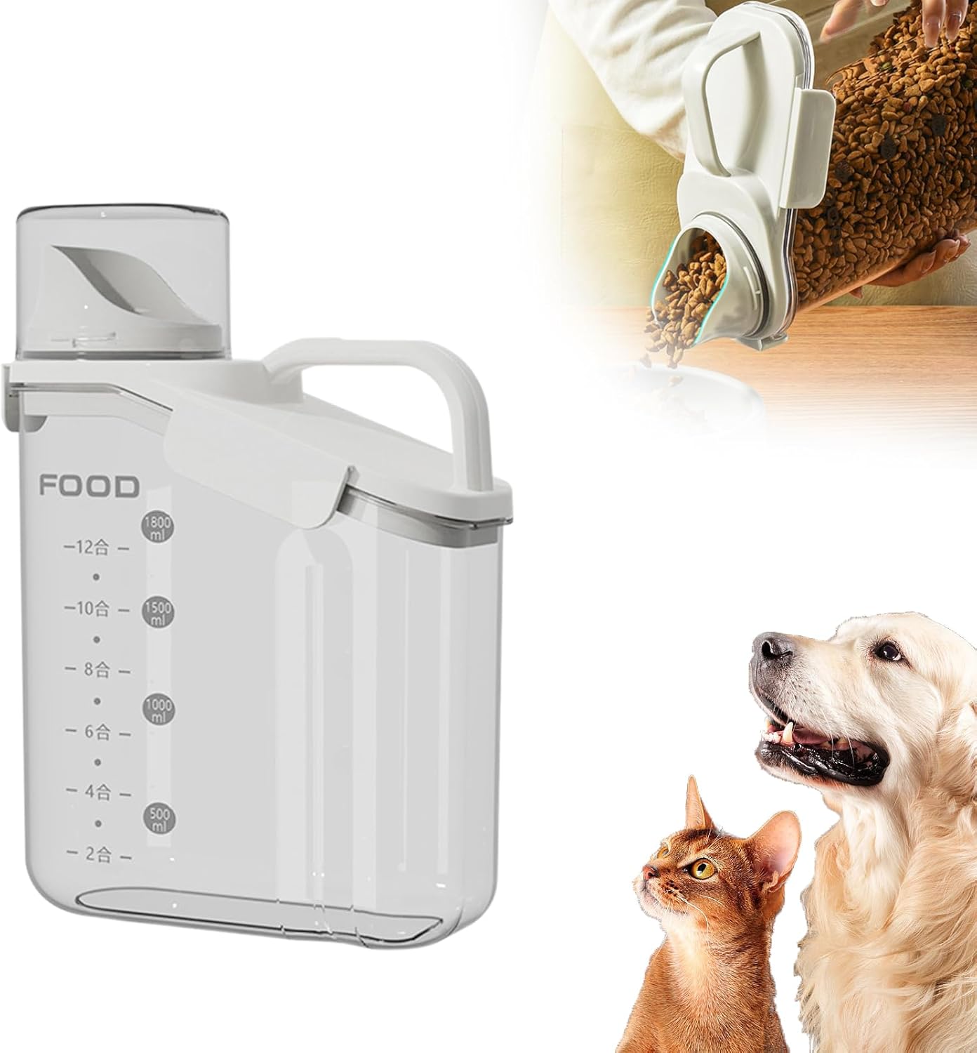- 【Large Pouring Spout & Measuring Cup】Our portable food container features a bigger spout making it a breeze to dispense your food even with large particles. (The other brand pouring spout is small and pour dog food or other large particles of food get stuck). Comes with a measuring cup which is easy to screw on the spout, to keep your food fresh and dry.