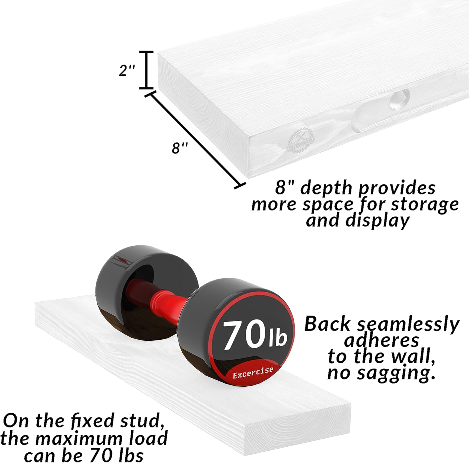 Rustic Floating Shelves 24 inch Long 8 inch deep Set of 2, Solid Wood Wall Shelves for Bedroom Living Room Kitchen,Book Shelf for Wall, Wall Mounted Shelves with Hidden Bracket- White