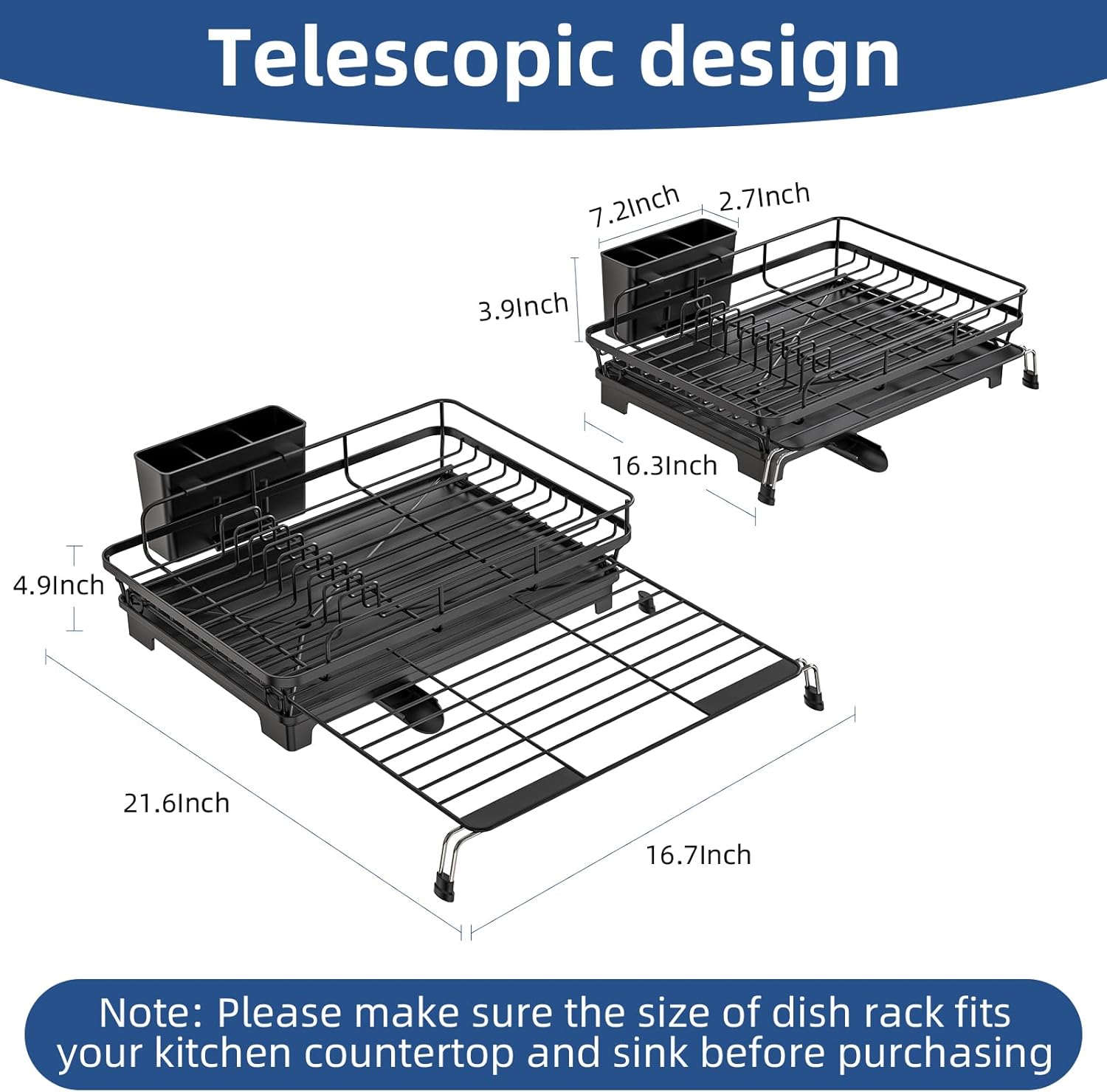 Extendable Dish Racks 16.3"-21.6" L x 16.7" W,Stainless Steel Dish Drying Rack for Kitchien Counter, Anti-Rust Dish Strainer with Cutlery Holder