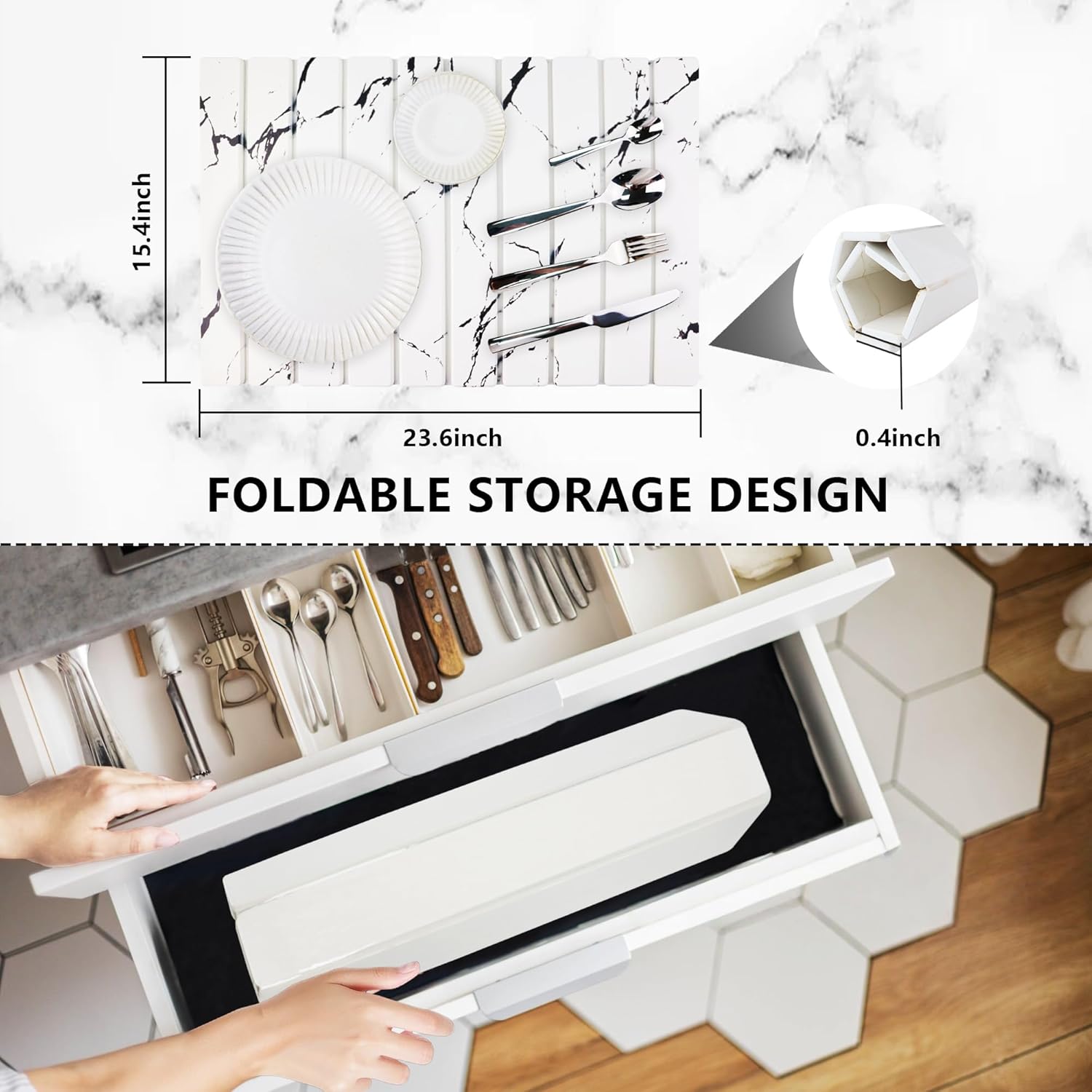 Large Stone Drying Mat for Kitchen Counter Diatomaceous Earth Collapsible 24”(L)*16”(W)Super Heat Resistant Mats, Quick Absorbent Dish Drying Rack(Gray marble)