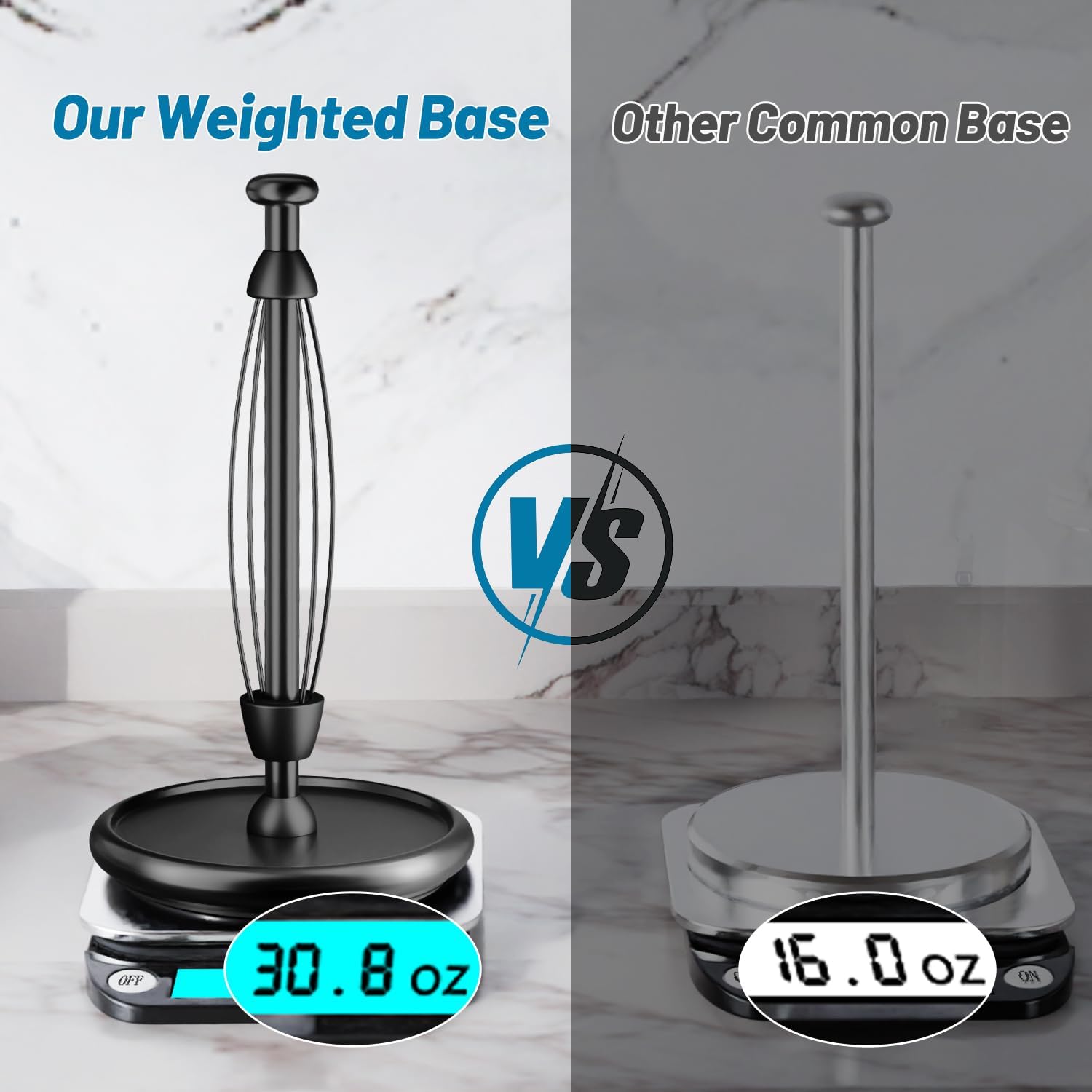 VEHHE Paper Towel Holder Countertop with Weighted Base, One-Handed Tear Paper Towel Holder with Damping Function and EVA Non-Slip Pad for Bathroom and Kitchen