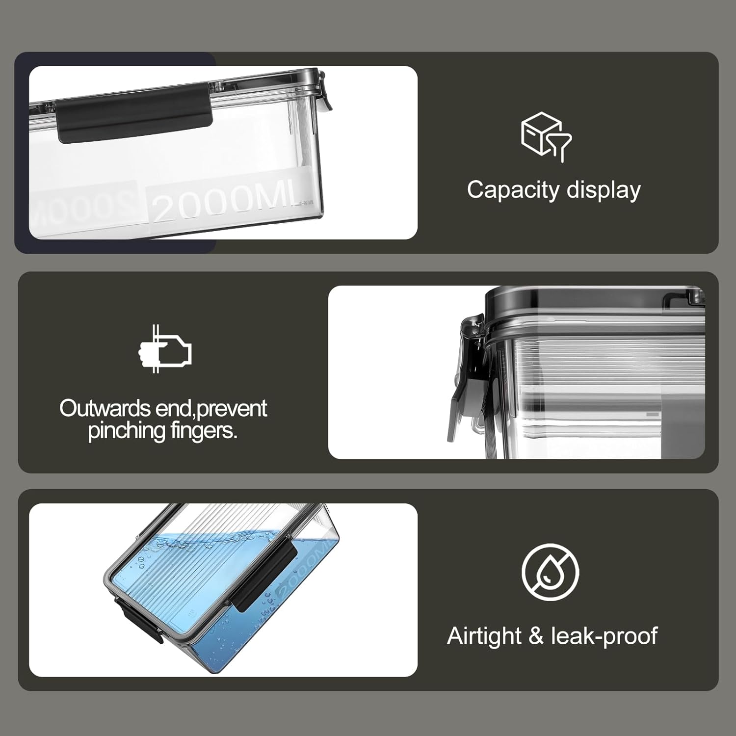 - Airtight: The snap lock on the lid with a built-in silicone sealing strip makes the freezer storage set locking edge fit, good sealing, spill-proof, and leakproof. Food containers can easily store and move food, prevent food from losing flavor, and extend the freshness time.